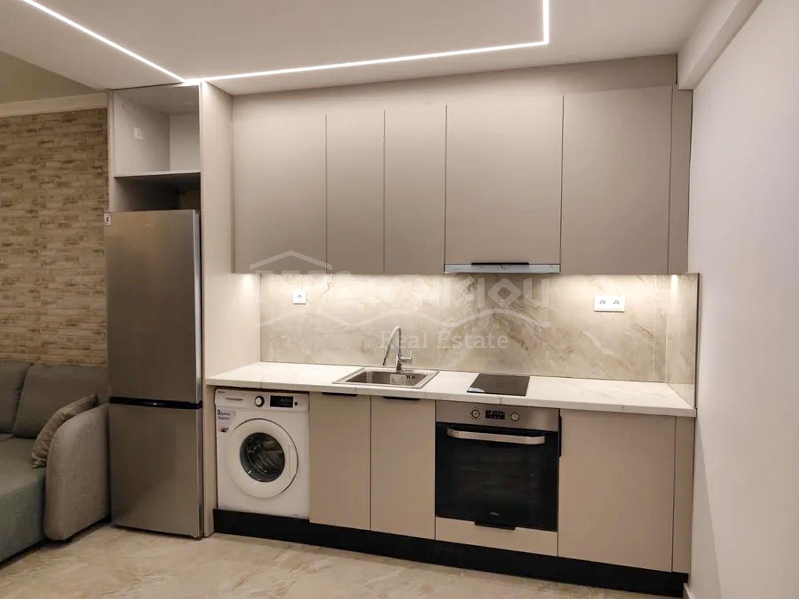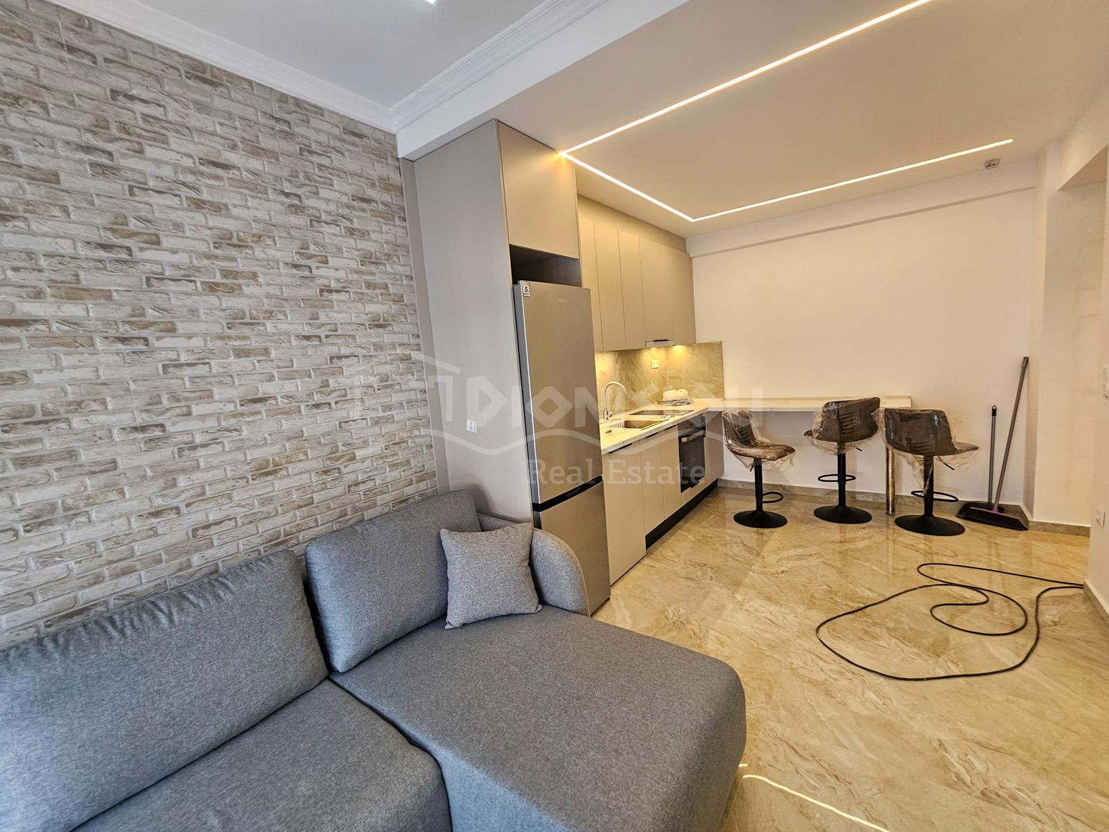 The apartment is located on the high ground floor and consists of a living room with a kitchen, a bedroom, a bathroom and a balcony.