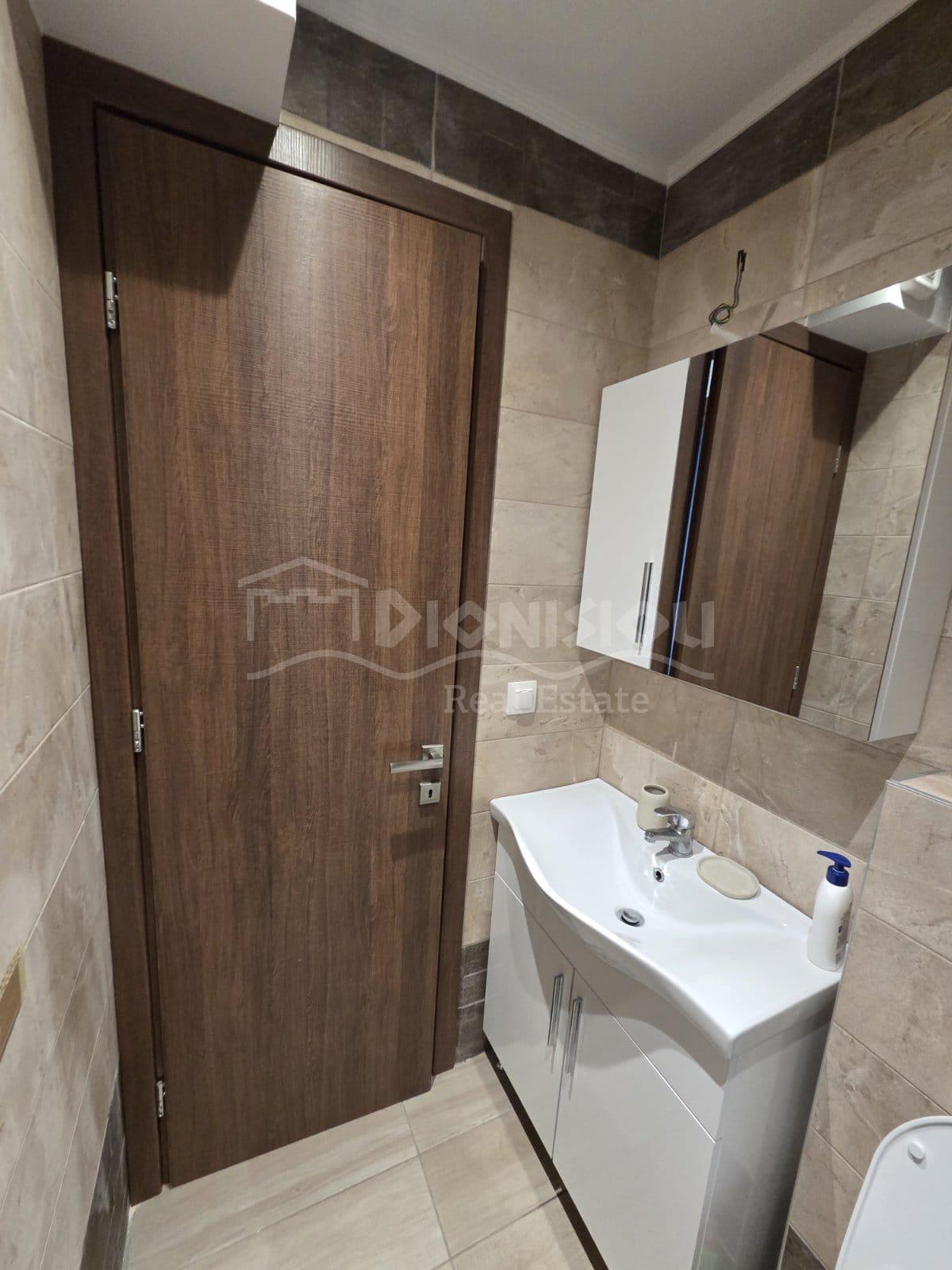 The apartment is located on the ground floor and consists of a living room with a kitchen, a bedroom, a bathroom and a balcony.