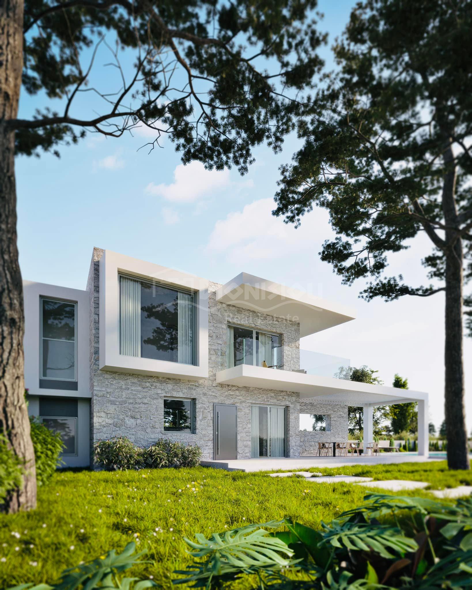 The villa is built with famous natural Afytos stones.