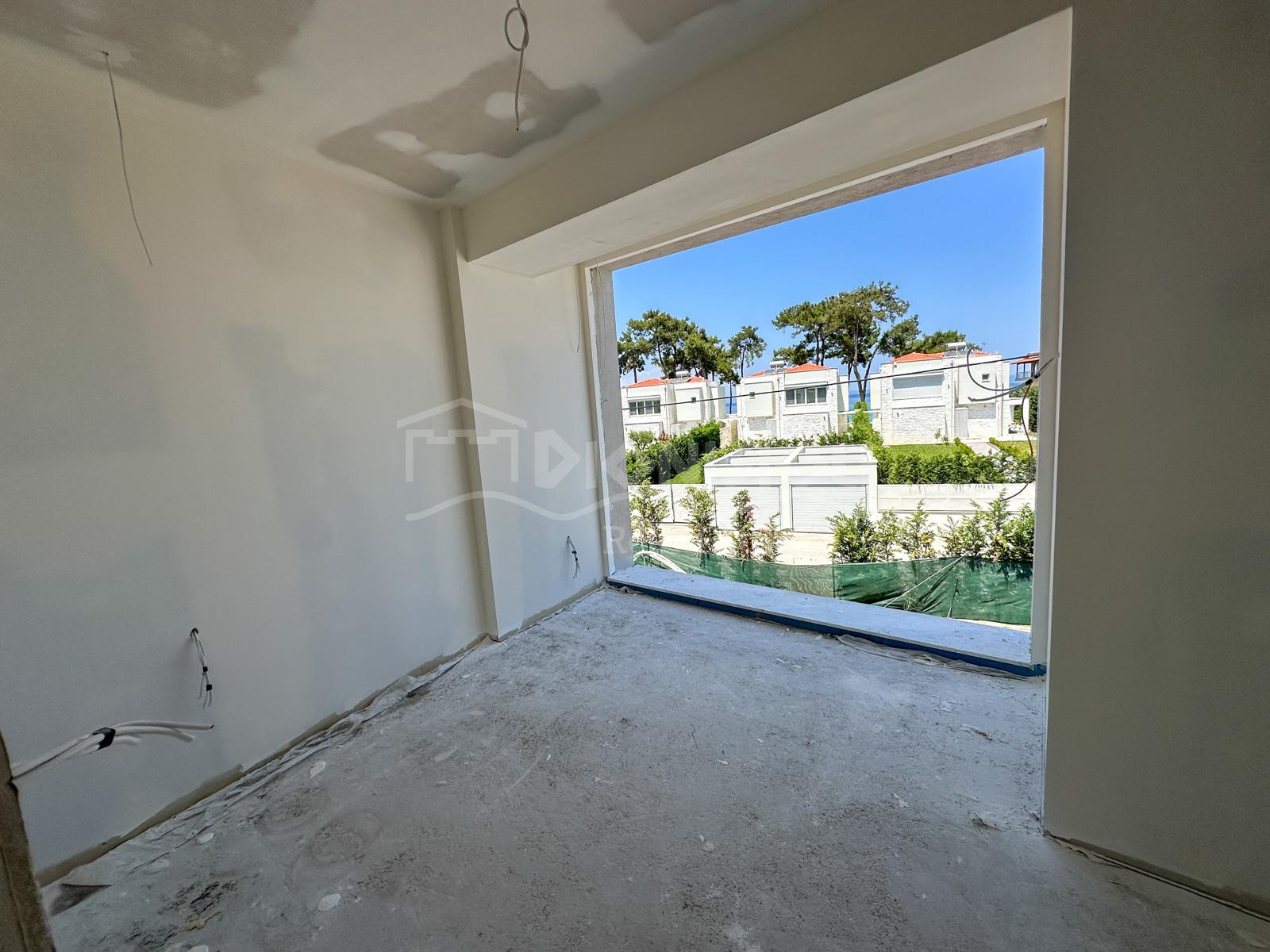 There are 3 levels in the houses: half underground, ground and 1st floor. The halfunderground floor consists of 2 bedrooms and a bathroom. The ground floor consists of a living room and a bathroom. The 1st floor consists of 2 bedrooms and abathroom. There is a sea view from the balconies.