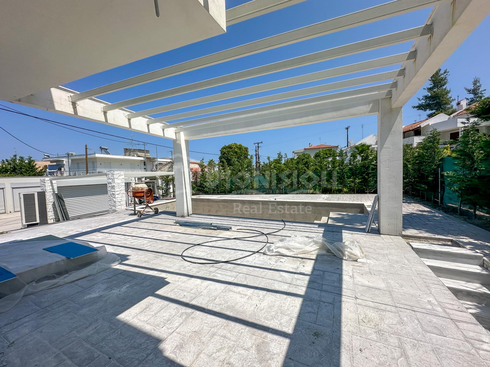 Luxury villa is located in a popular tourist village named Hanioti only 50 meters to the nice sandy beach, 500 meters to the central square and 500 meters to the nearest supermarket.