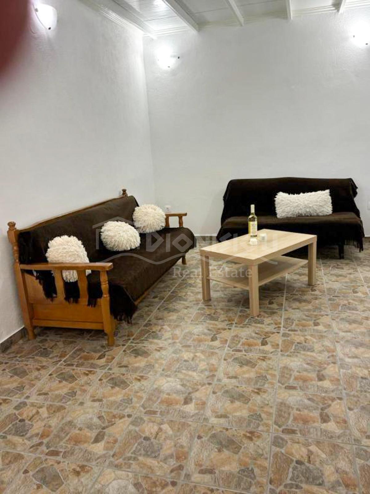 The house consists of a living room with a kitchen, 2 bedrooms, a bathroom and a balcony 25 sq. meters with a sea view. There is a storage room 34 sq. meters on the ground floor.