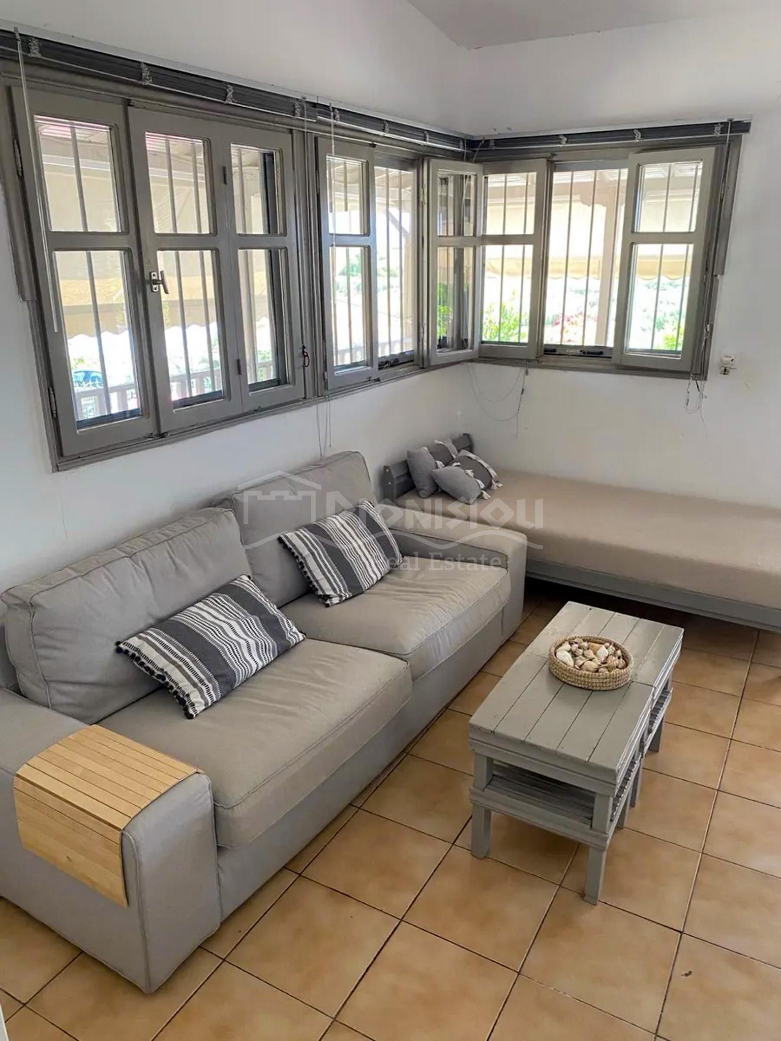The house consists of a living room, a kitchen, 2 bedrooms and a bathroom. The house was renovated in 2023. There is sea view from the house. The house is for sale with furniture and electrical appliences.