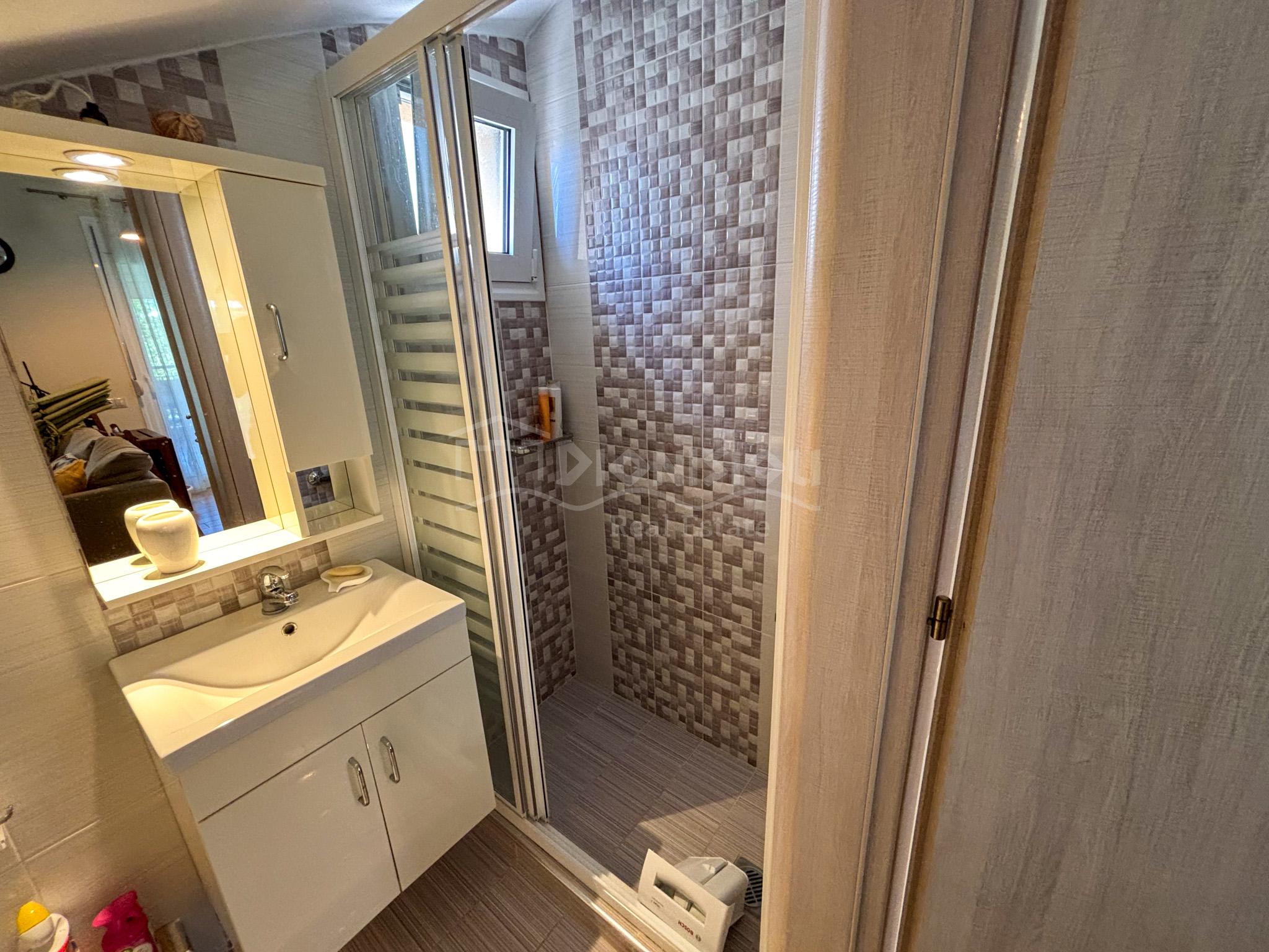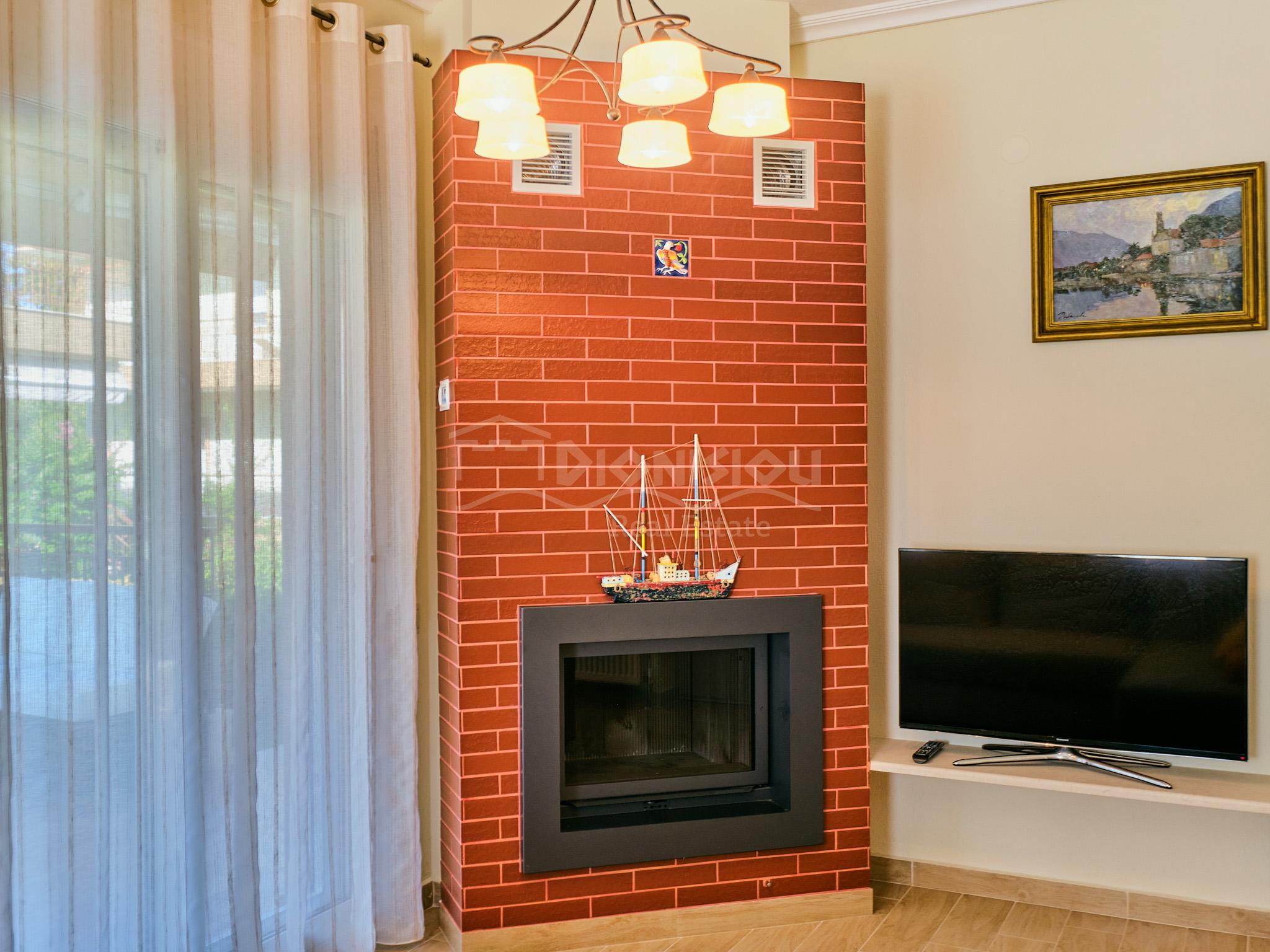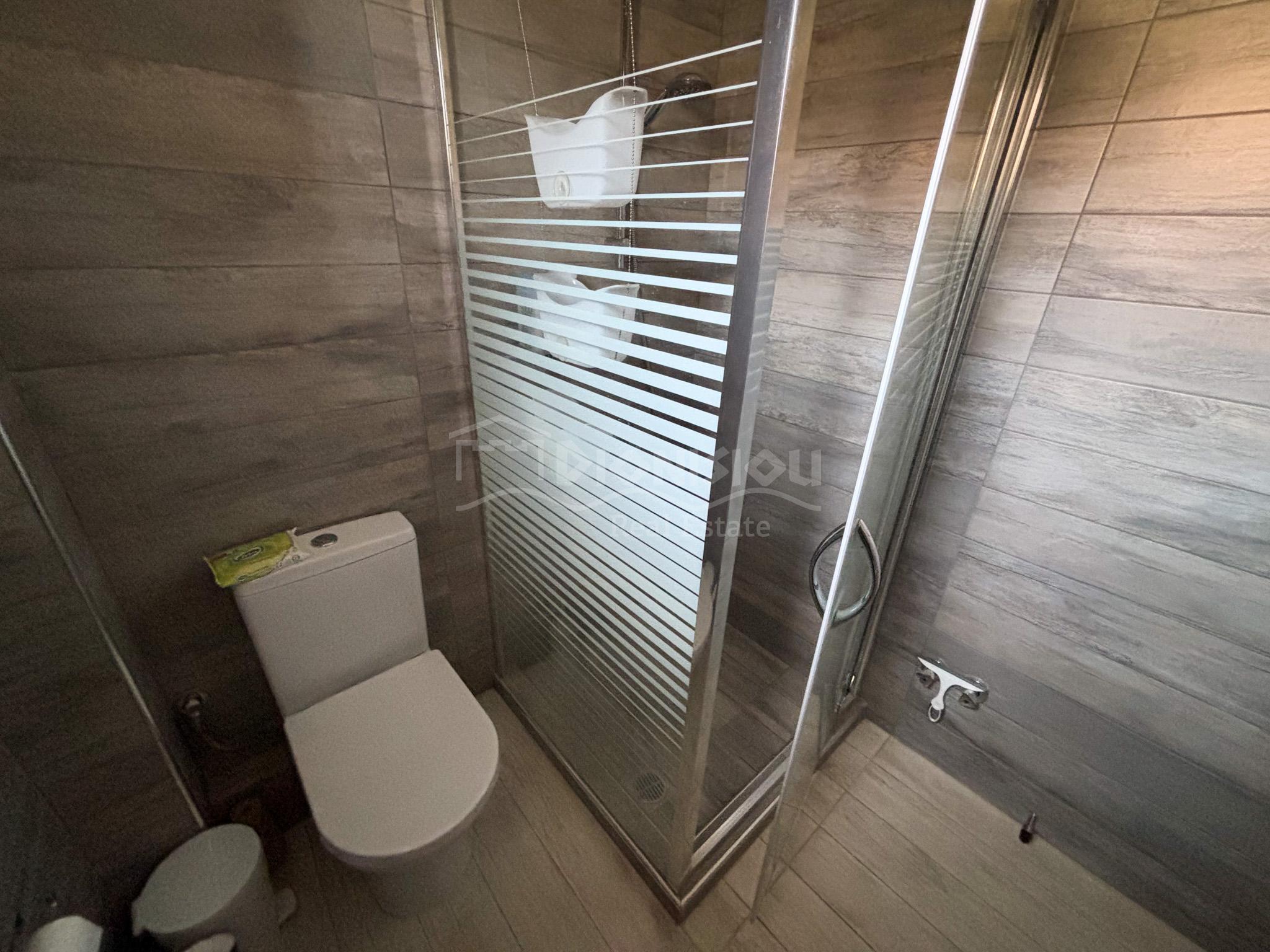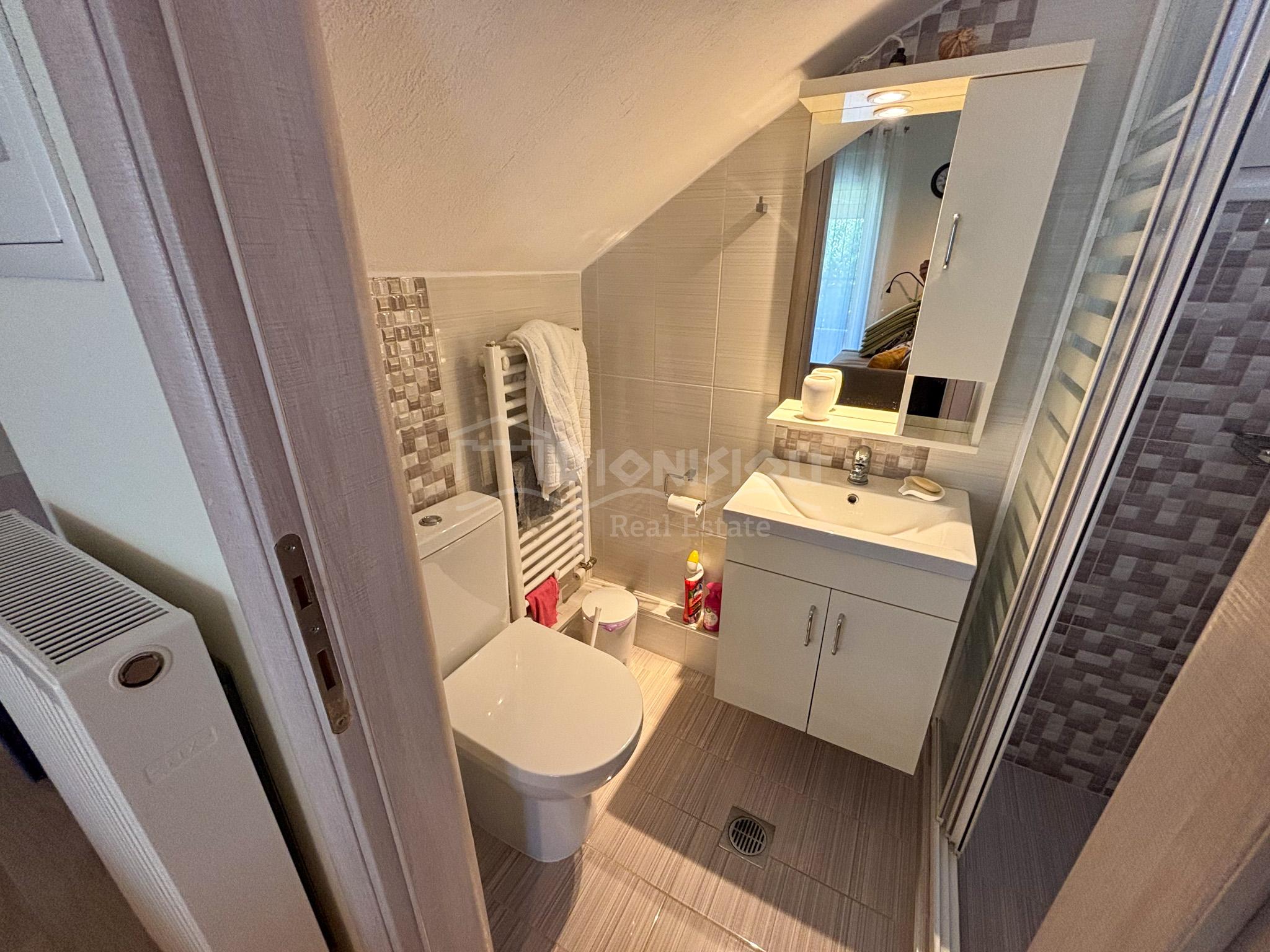 The high ground floor consists of a living room with a fireplace and a kitchen, a bathroom and a large balcony. The 1st floor consists of 2 bedrooms, a bathroom and a balcony. There is the basement floor (35 sq. meters) with an entrance from outside.