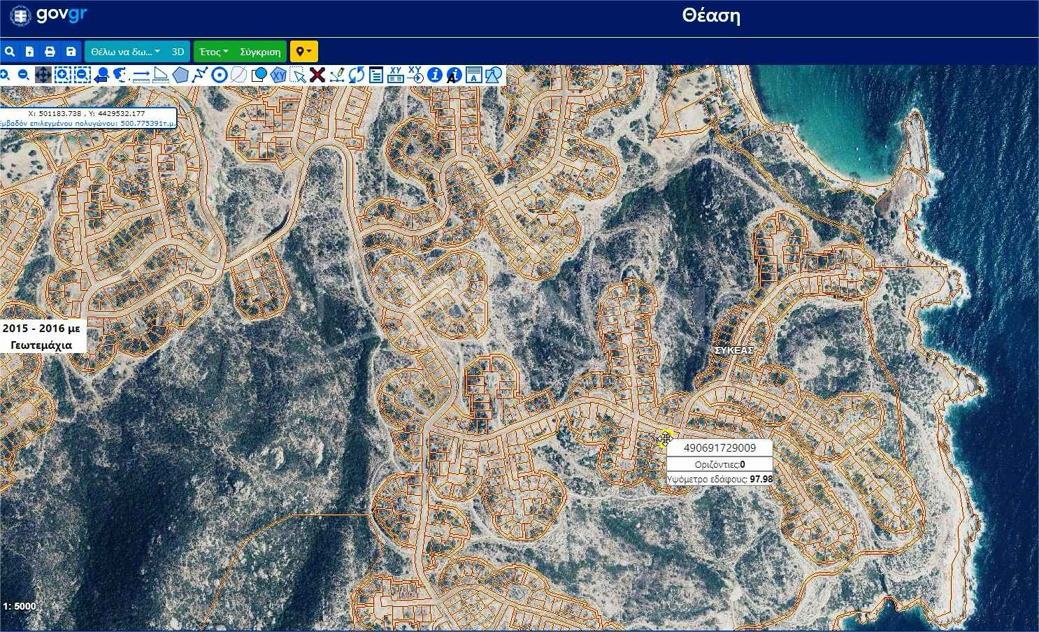 The land is 500 square meters and is located 2 km from the beach in area Kriaritsi 10 kilometers from the village of Sykia.