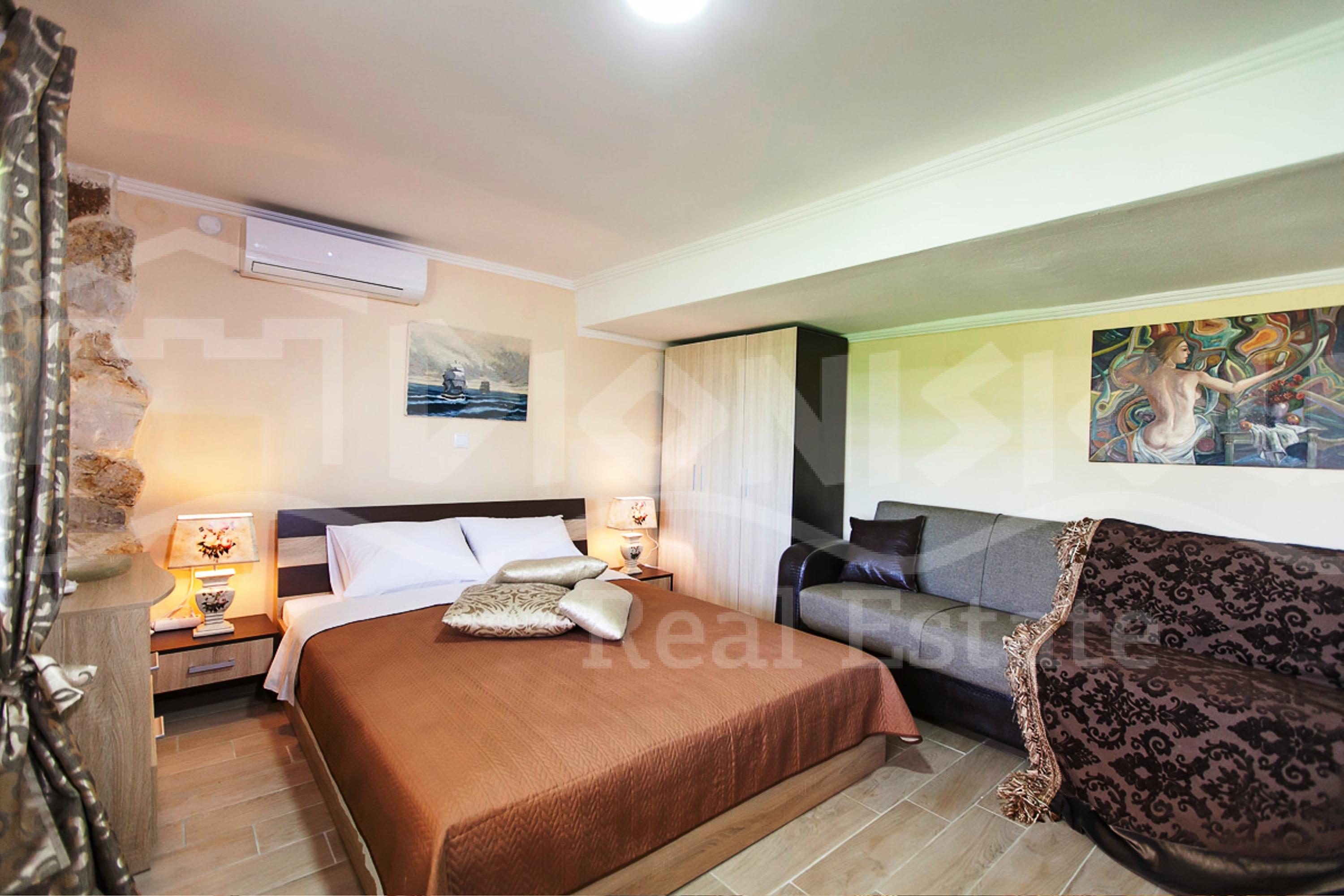 There are 3 floors in the villa. The villa consists of a living room with a fireplace, 3 kitchens, 7 bedrooms, 4 bathrooms. There is a great sea view from the villa. The villa is fully furnished and equipped with electrical appliences of high quality.