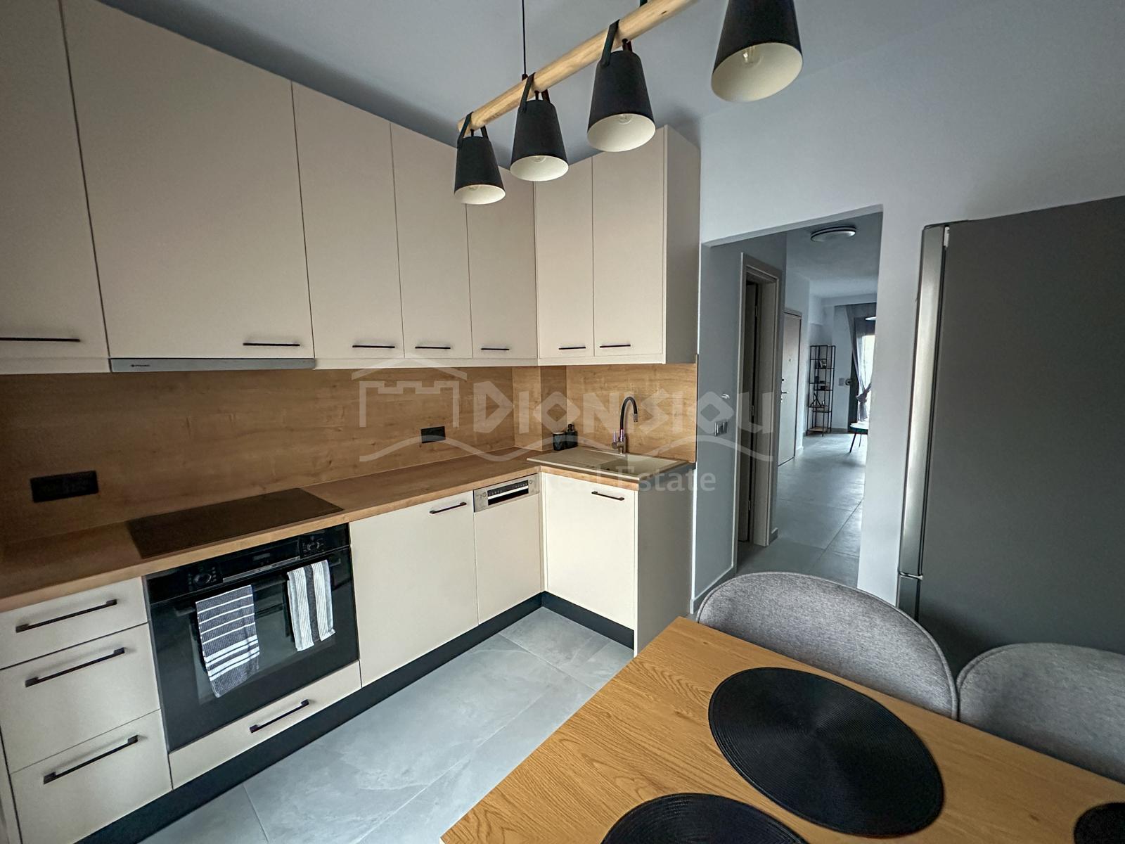 The apartment is equipped with 3 air-conditions, individual heating system (heating floors with waterpump), a kitchen, external sliding aluminium doors, security entrance door, 160 litre solar heating system, pre-installation for alarm system, pre-installation for satellite TV, pre-installation for electric sunshade tents.
