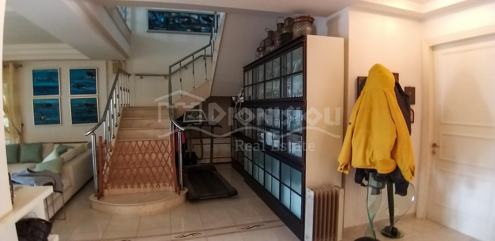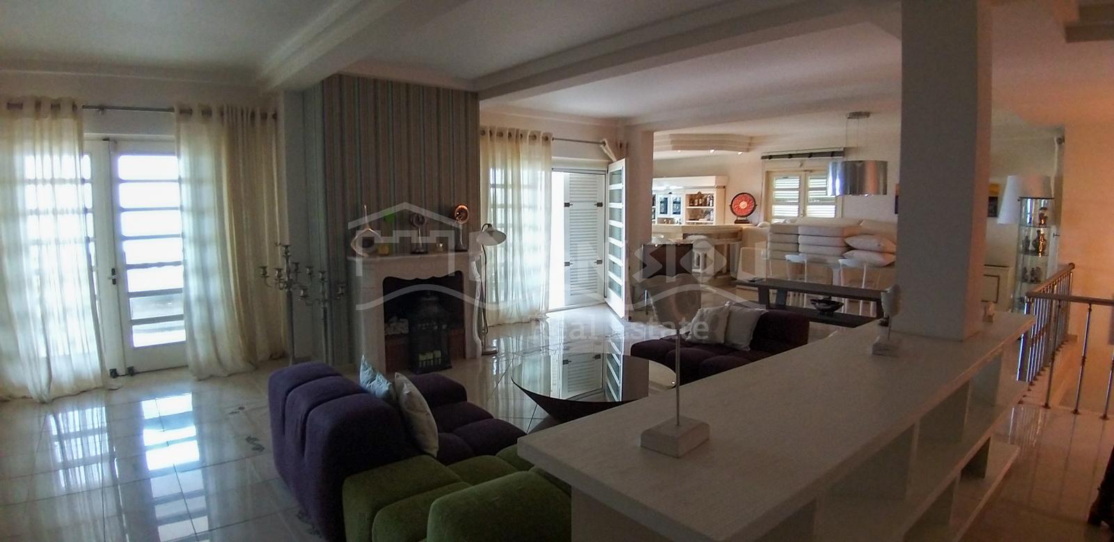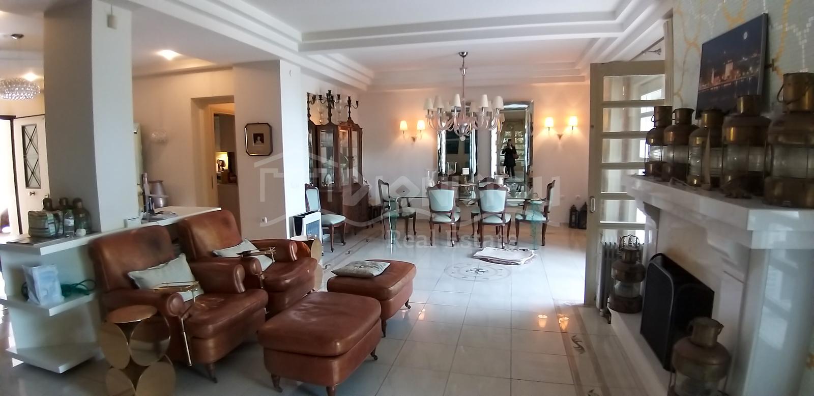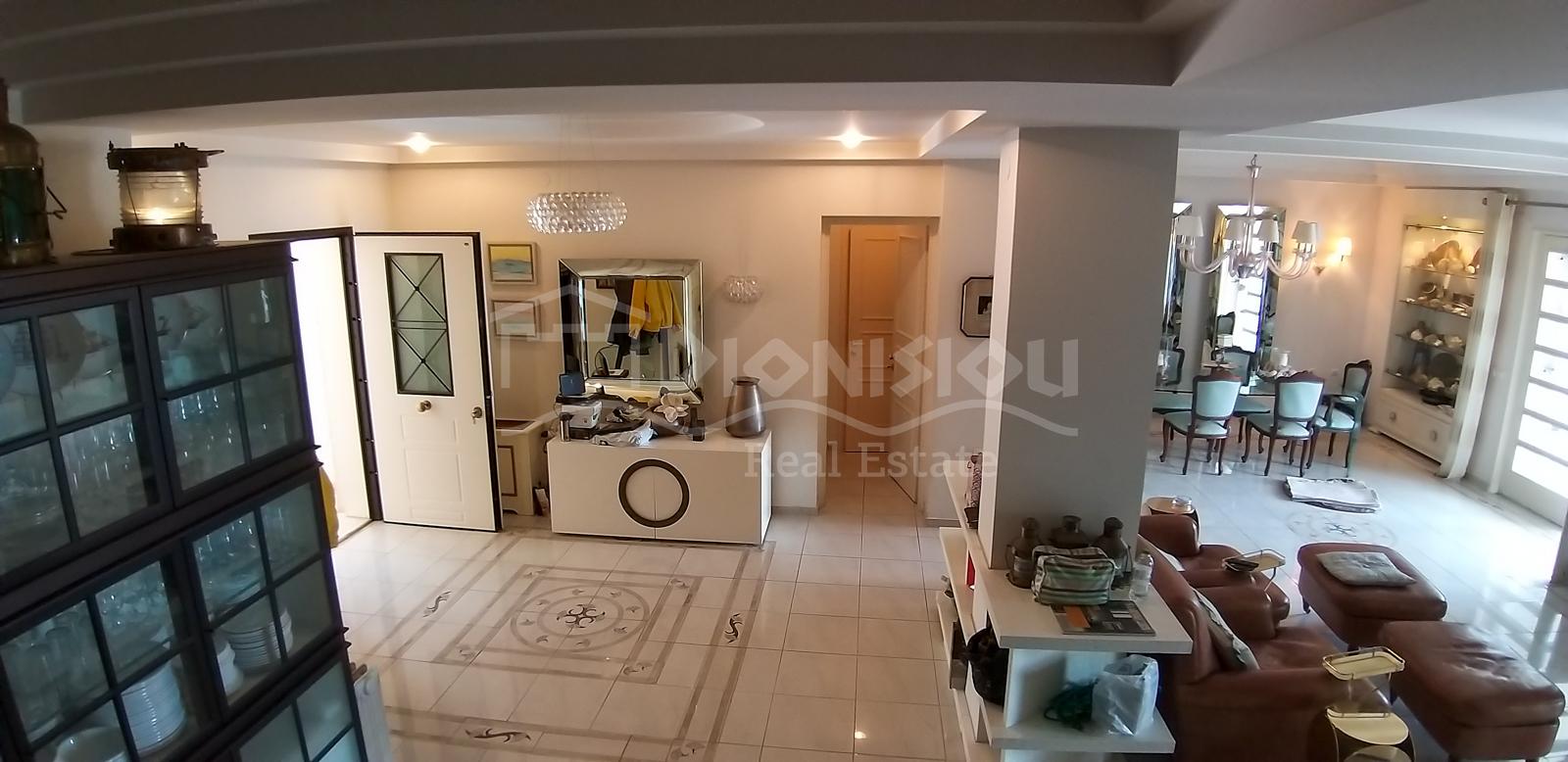 The ground floor consists of a large living room with a fireplace, a kitchen, wc, 2 bedrooms and a bathroom. The 1st floor consists of a huge living room with a fireplace, a bar, 5 bedrooms and 4 bathrooms. There are large balconies on the ground and 1st floors with a fantastic sea and Sithonia view.