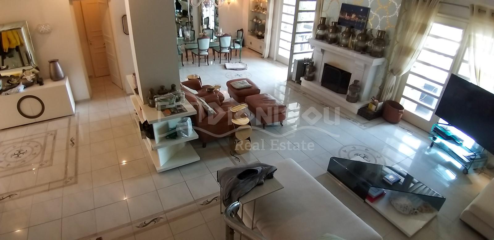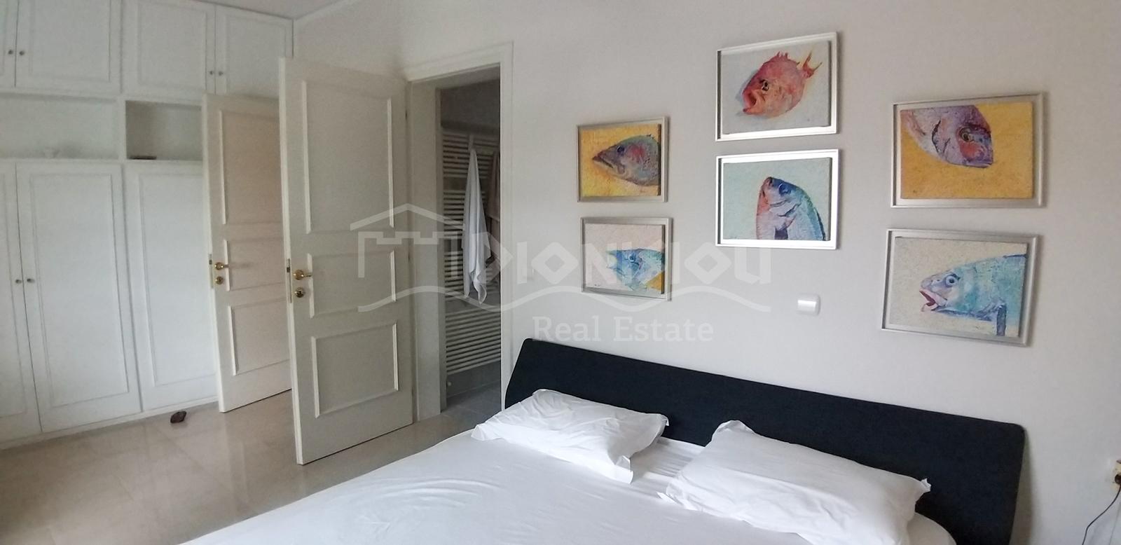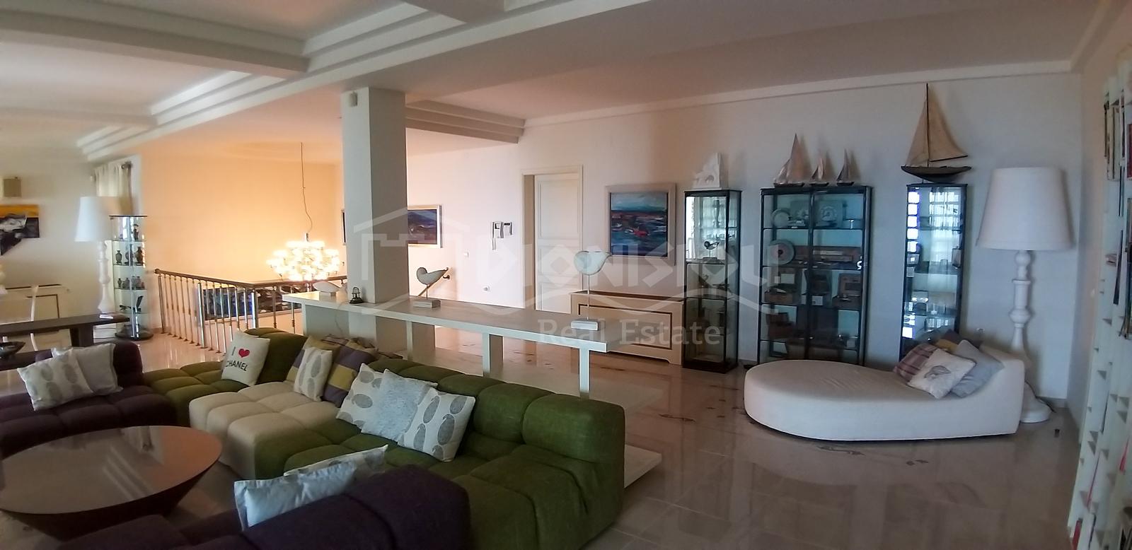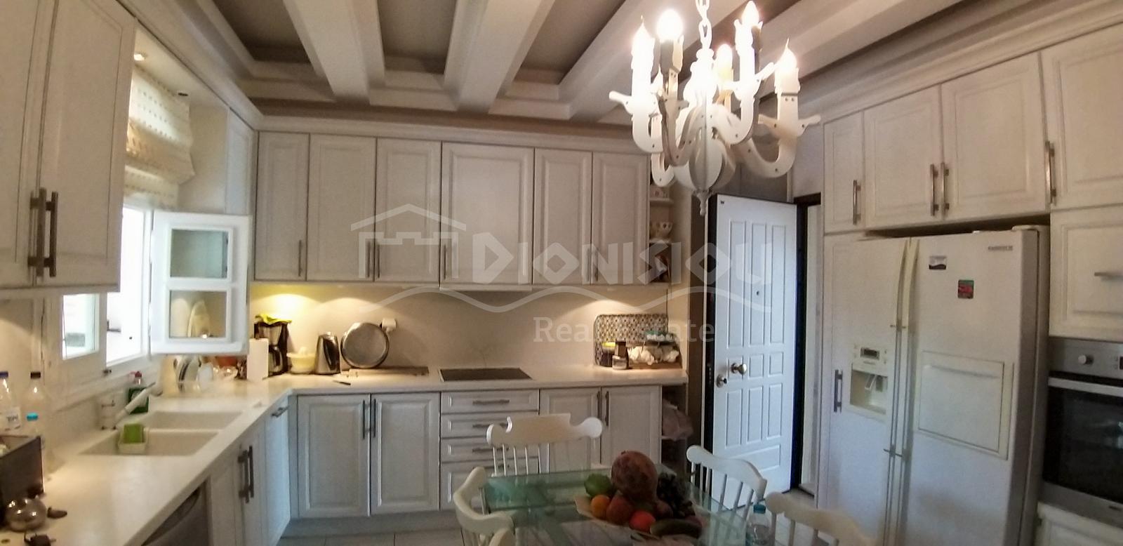 The ground floor consists of a large living room with a fireplace, a kitchen, wc, 2 bedrooms and a bathroom. The 1st floor consists of a huge living room with a fireplace, a bar, 5 bedrooms and 4 bathrooms. There are large balconies on the ground and 1st floors with a fantastic sea and Sithonia view.