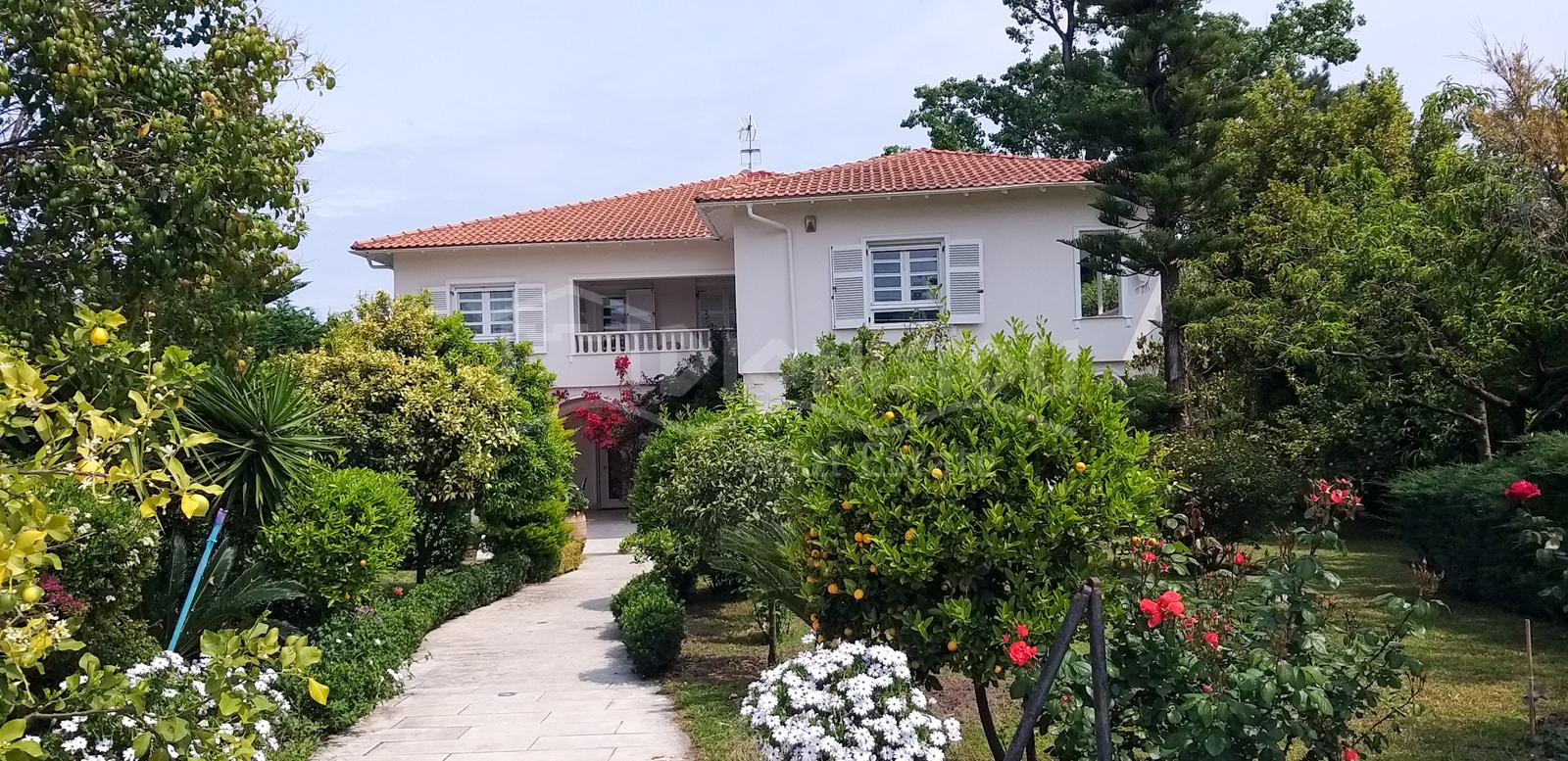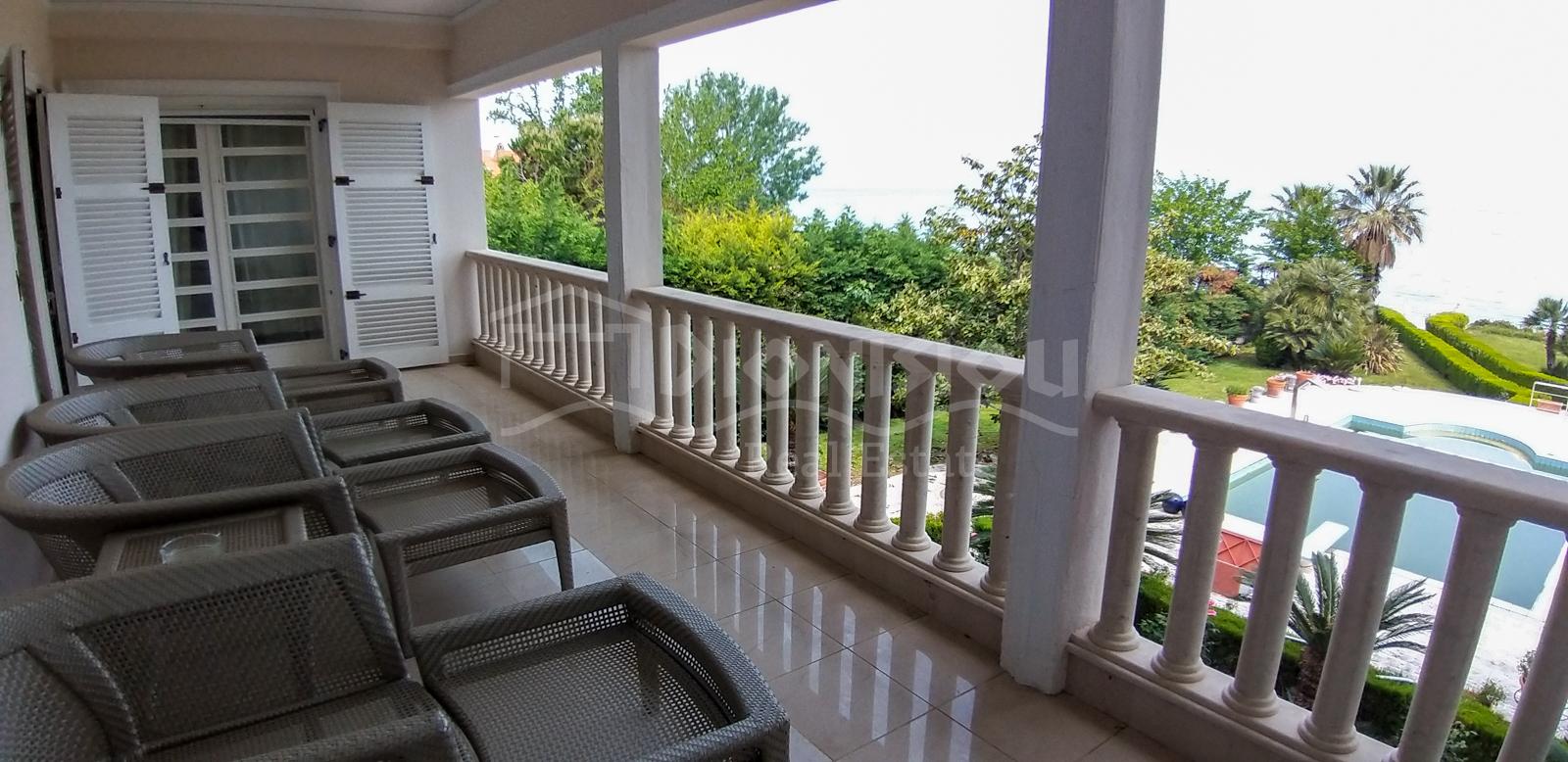 There is a garden 2800 sq. meters with a separate house for a staff, a swimming pool, barbeque zone, covered parking for 3 cars. There is a direct exit to the sandy beach from the villa.