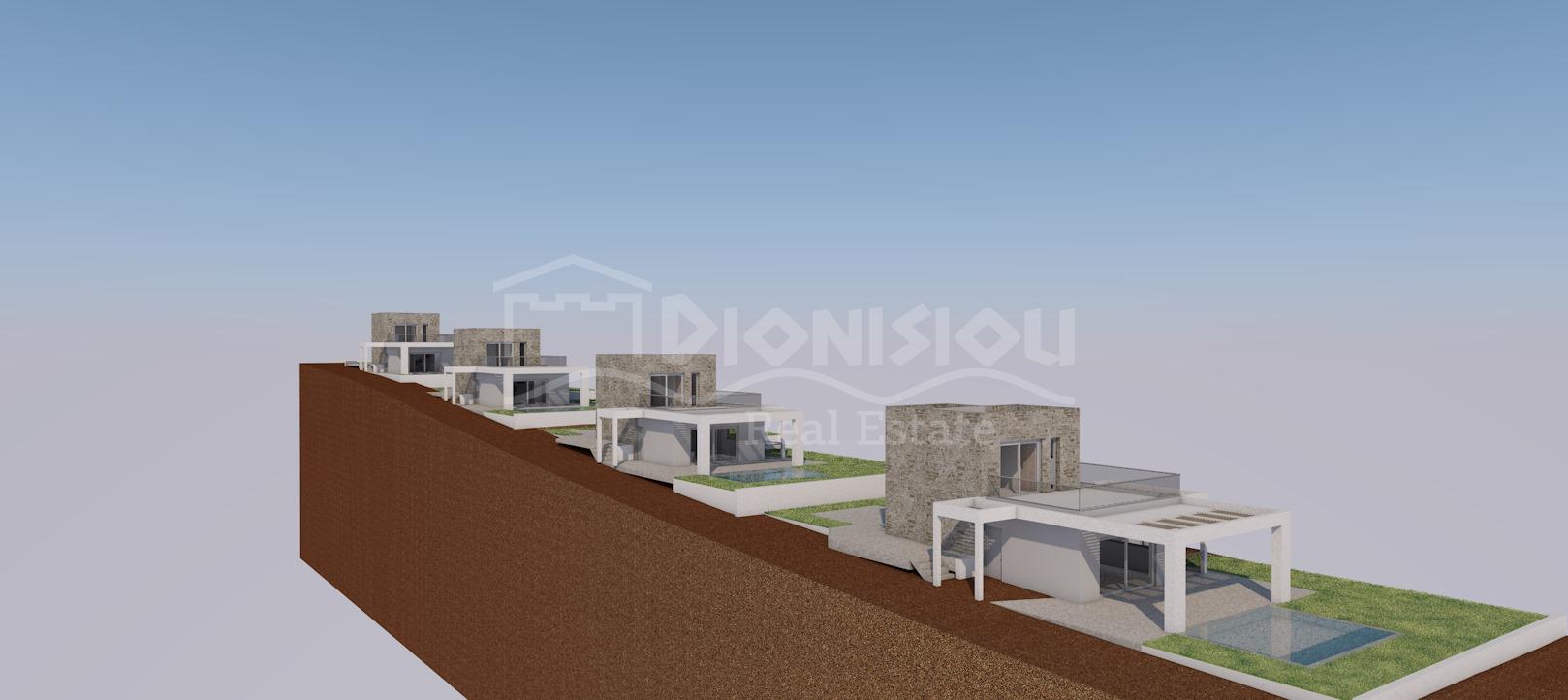 There are 4 villas in the complex and 2 of them are for sale. The villa has a garden of 400 sq. meters.