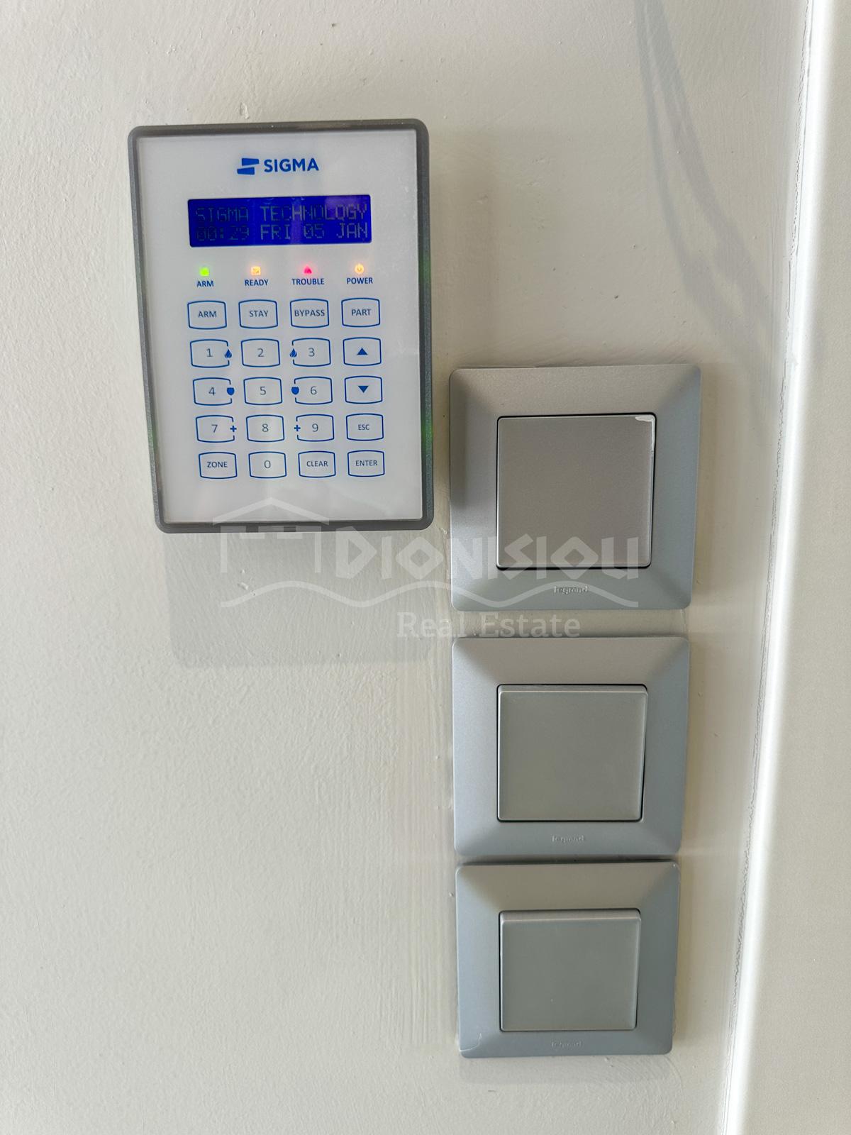 Security door, pre-installation of air conditioning, pre-installation of heating system, pre-installation of sunshade tents, pre-installation of alarm, pre-installation of cameras, solar heating system, parking for 2 cars. Pre-installation of a water tank with a pump, in case of water supply interruption.