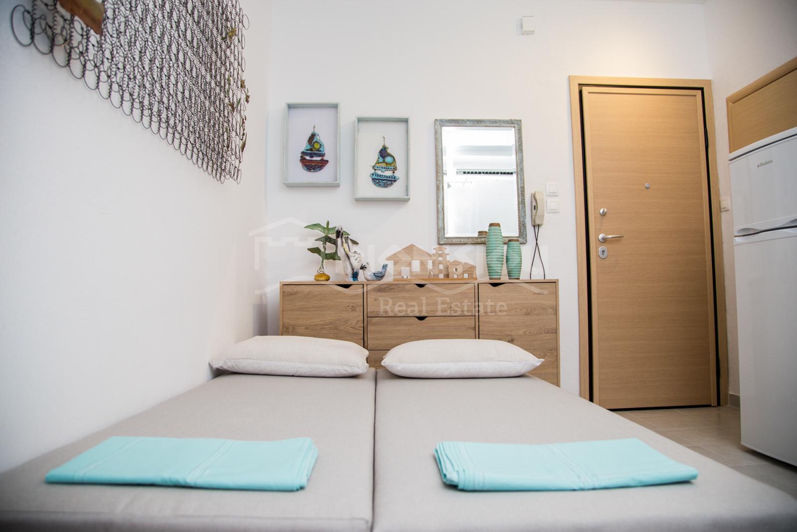 The apartment is located on the 1st floor and is consists of a bedroom, a living room with a kitchen, a bathroom and a balcony with a sea view.