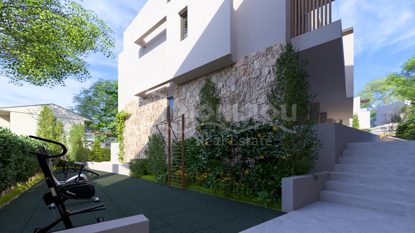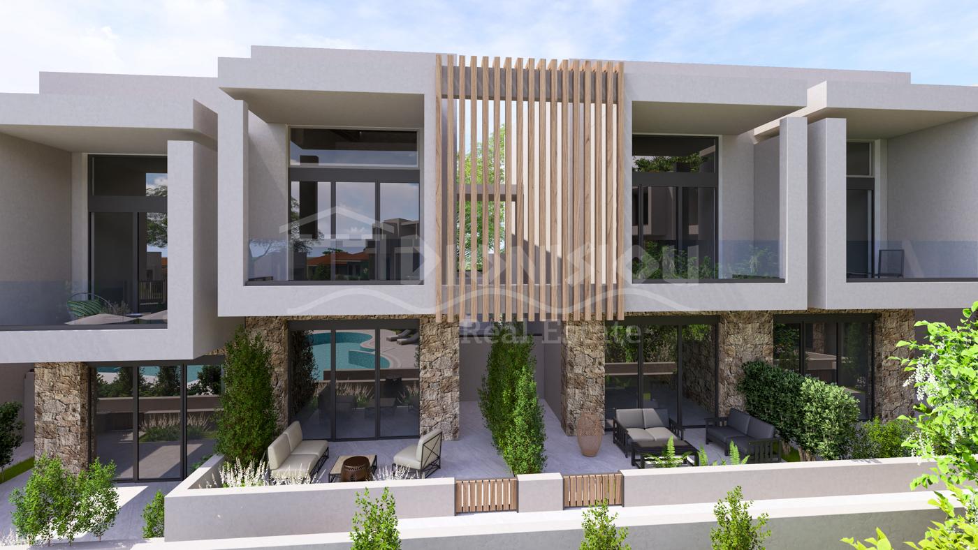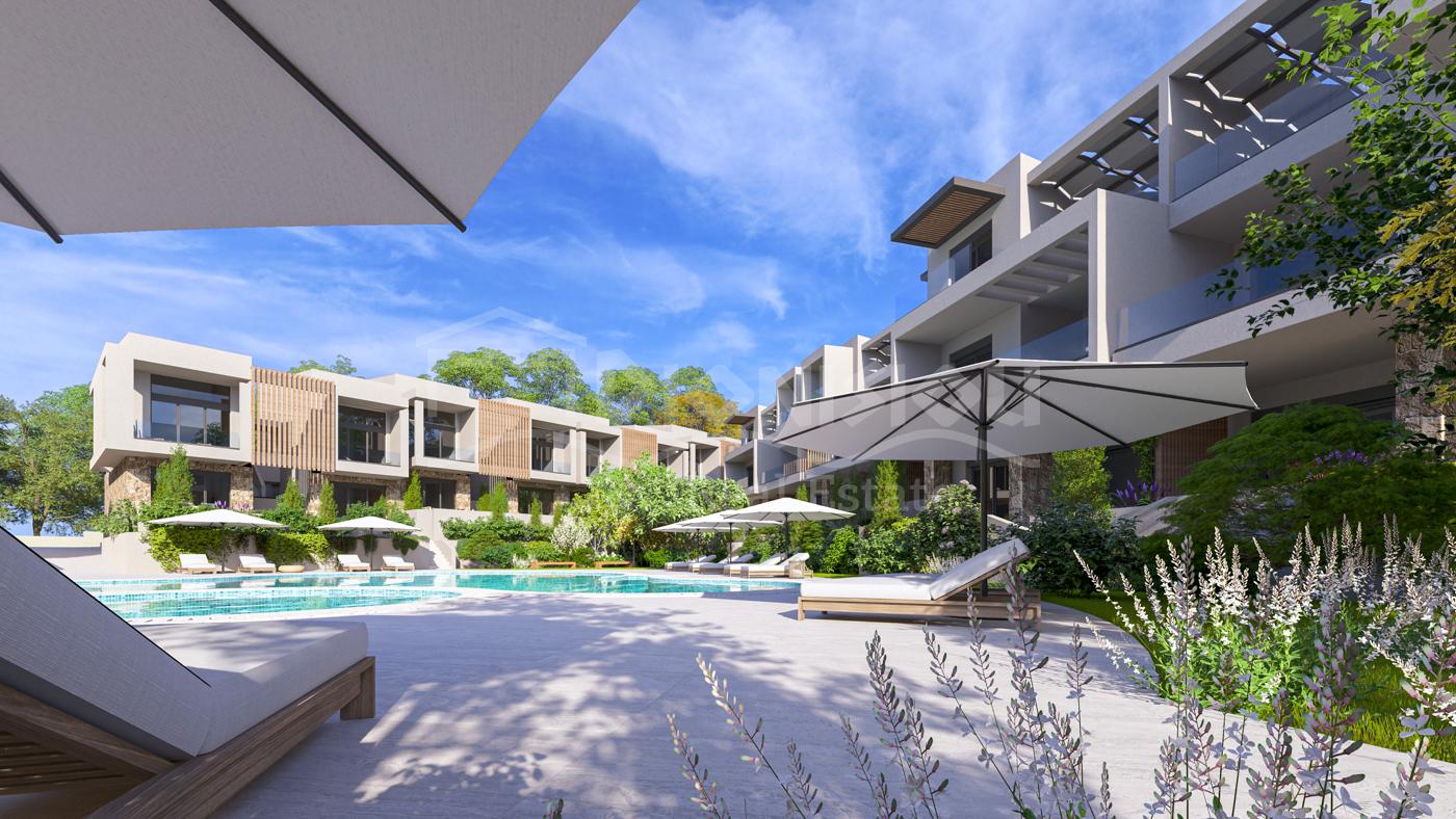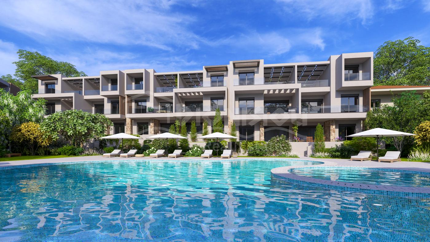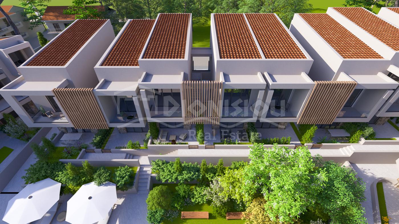 The apartments are located on the ground floor and are from 65 sq. meters with private gardens from 30 sq. meters witht he prices starting from 205 000 euro depending on its position in the complex. The apartments consist of a living room with a kitchen, 2 bedrooms, a bathroom and a veranda.