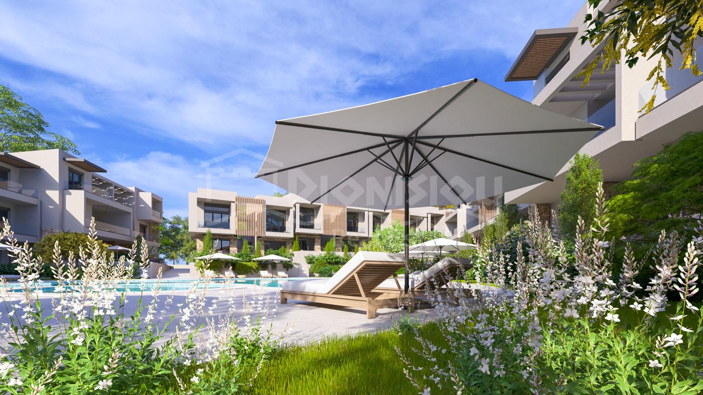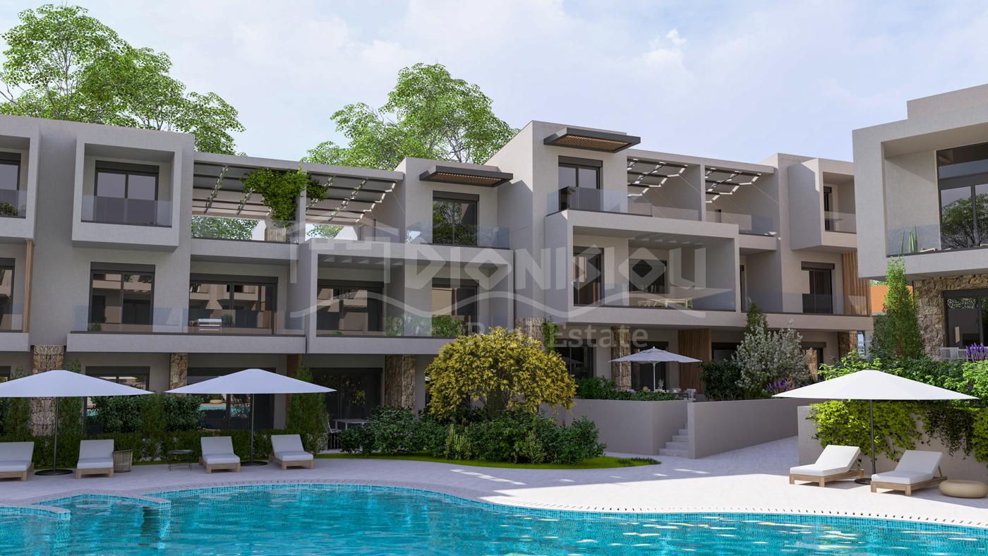 The complex is located in a popular tourist village Kalithea 650 meters to the beach and in a close walking distance to the bars and shops.
