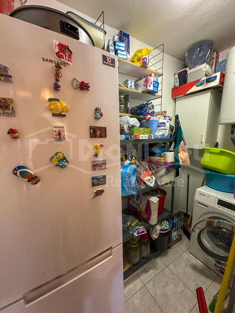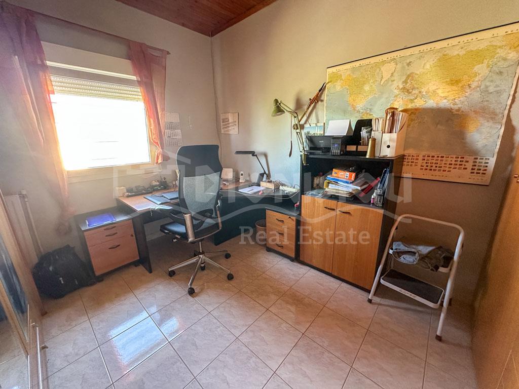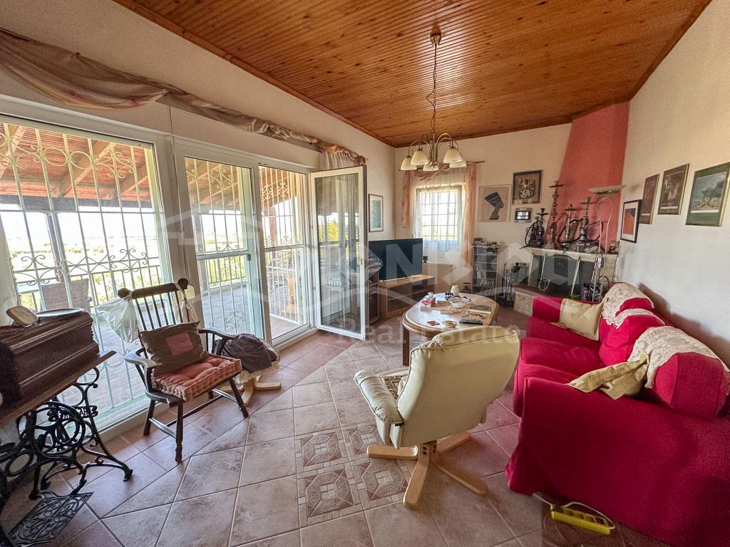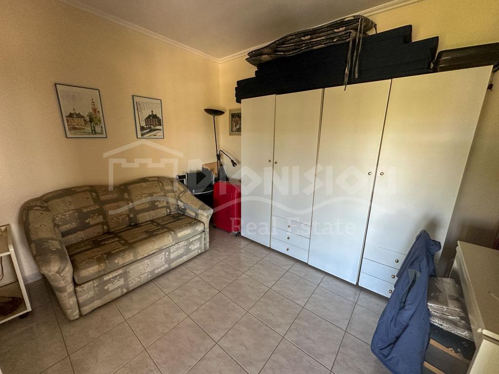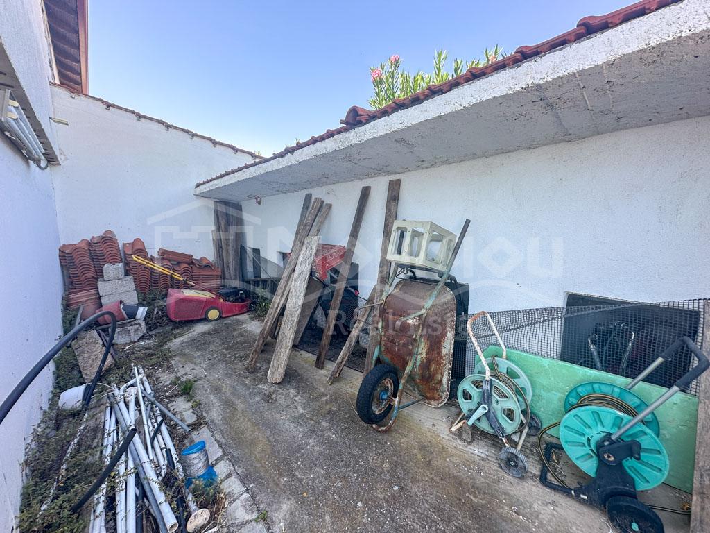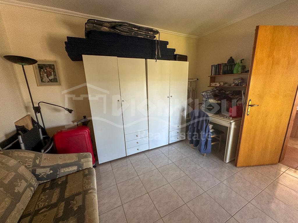 There are 2 floors in the house. The ground floor consists of a kitchen, a bedroom, a bathroom, a storage room and a veranda. The 1st floor consists of a living room with a fireplace, 2 bedrooms, a bathroom and a large corner balcony with fantastic sea view.