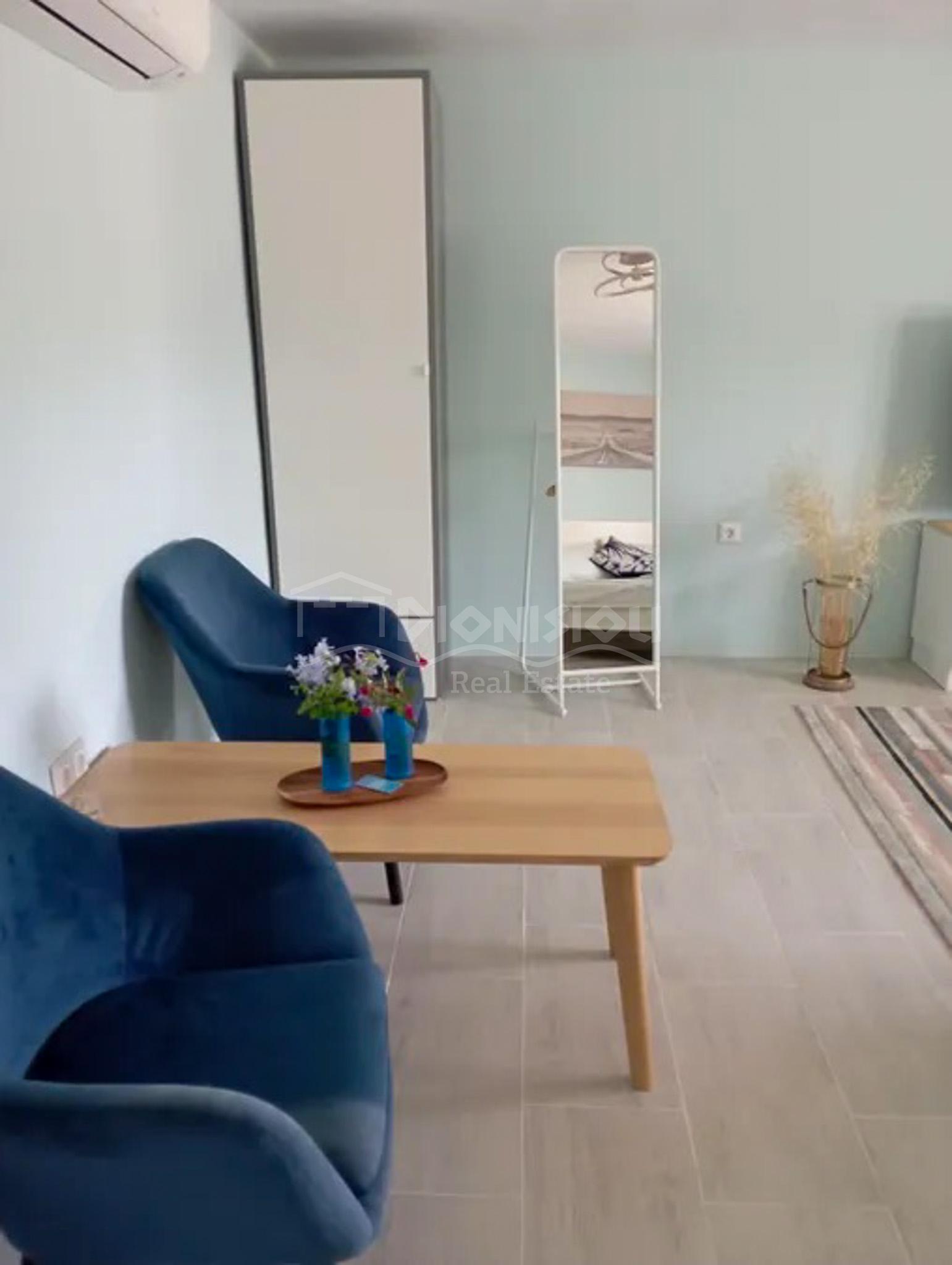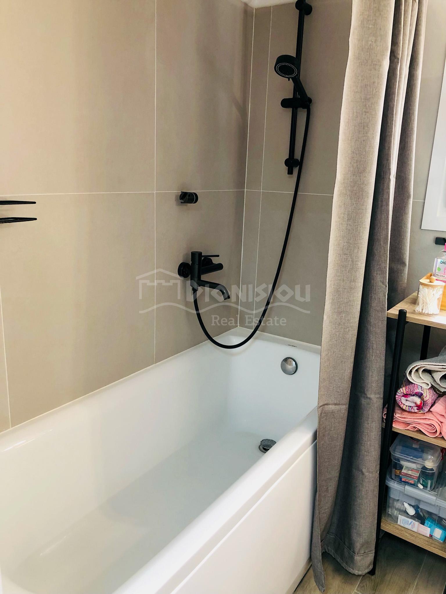 The apartment on the 1st floor (97 sq.meters) consists of a living room with a kitchen, 2 bedrooms, a bathroom and 2 balconies.