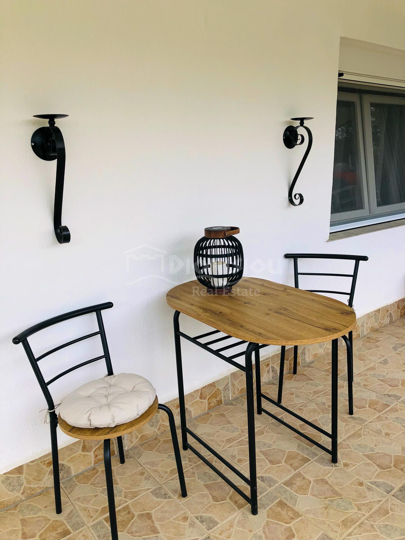 There are 2 apartments on the ground floor (45 sq. meters and 55 sq. meters). Each apartment consists of the living room with a kitchen, a bedroom, a bathroom and a veranda.