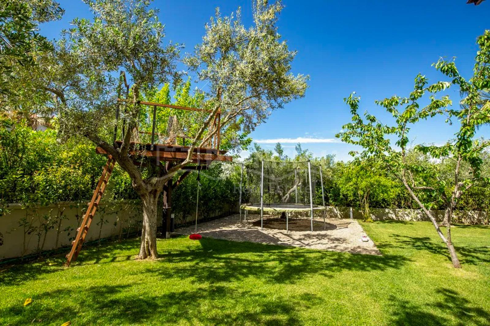 The villa is located on the plot 1240 sq. meters. There is a BBQ and a playground in the garden.