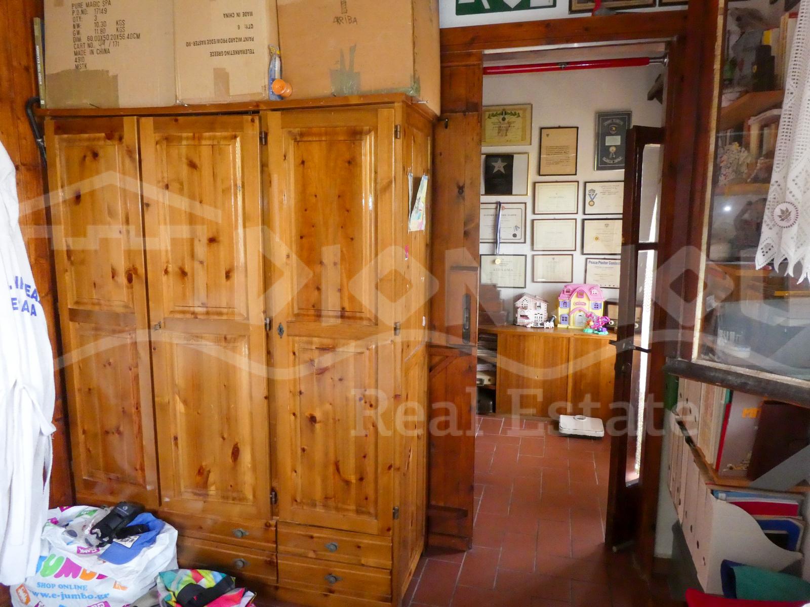 There are 3 floors in the house: 2 floors (65 sq. meters each) and half underground floor 45 sq. meters which is used as a storage room. The ground floor consists of a living room with a fireplace, separate kitchen, a laundry room, a bathroom and a veranda. The 1st floor consists of 3 bedrooms, a bathroom, a wardrobe room and a balony.