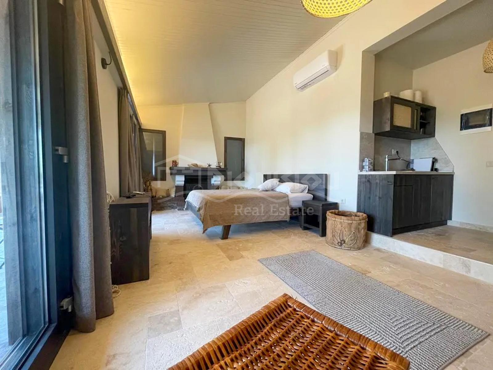 The house consists of 5 studios. Each studio consists of an open space with a kitchen and a bathroom.