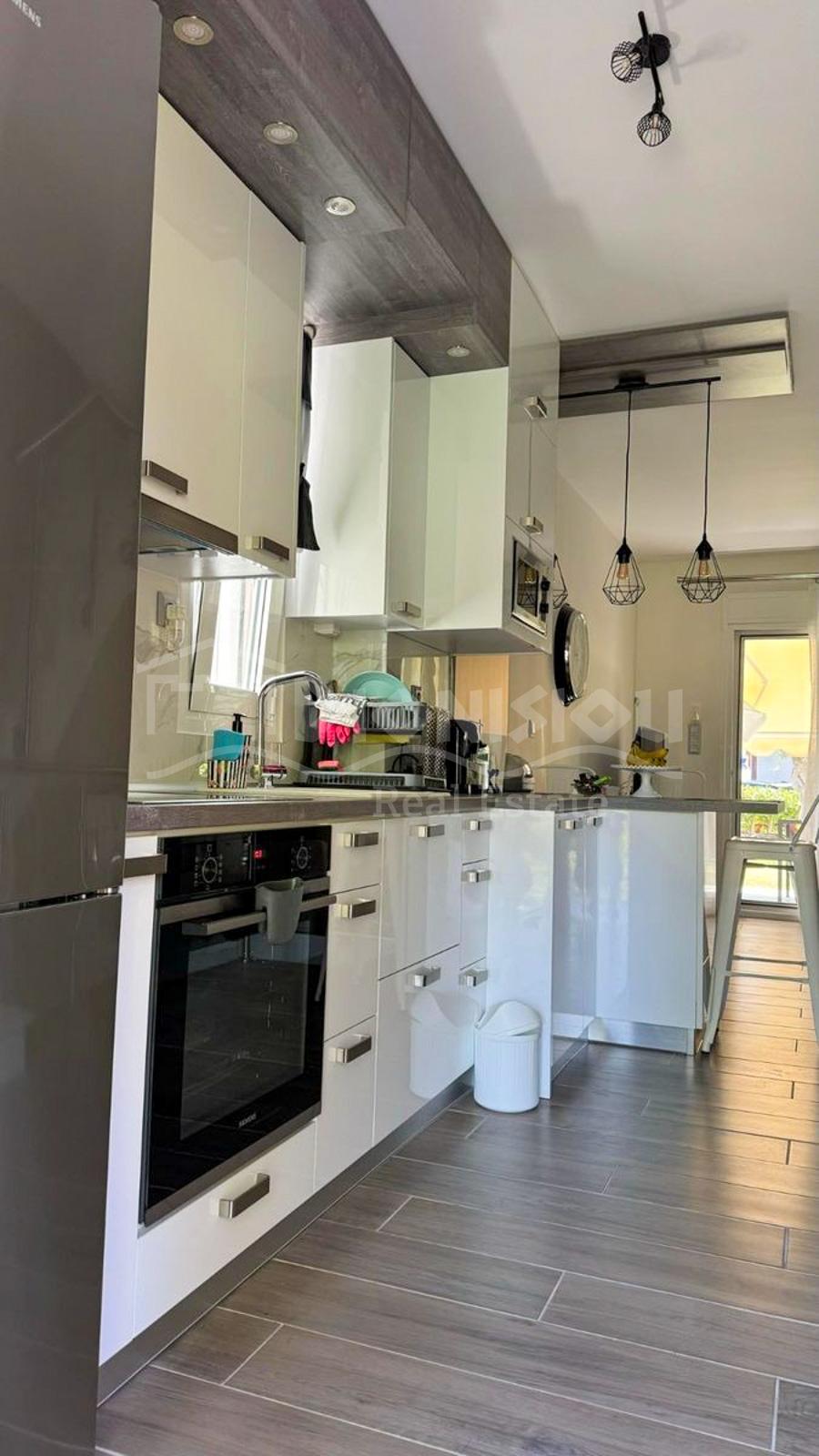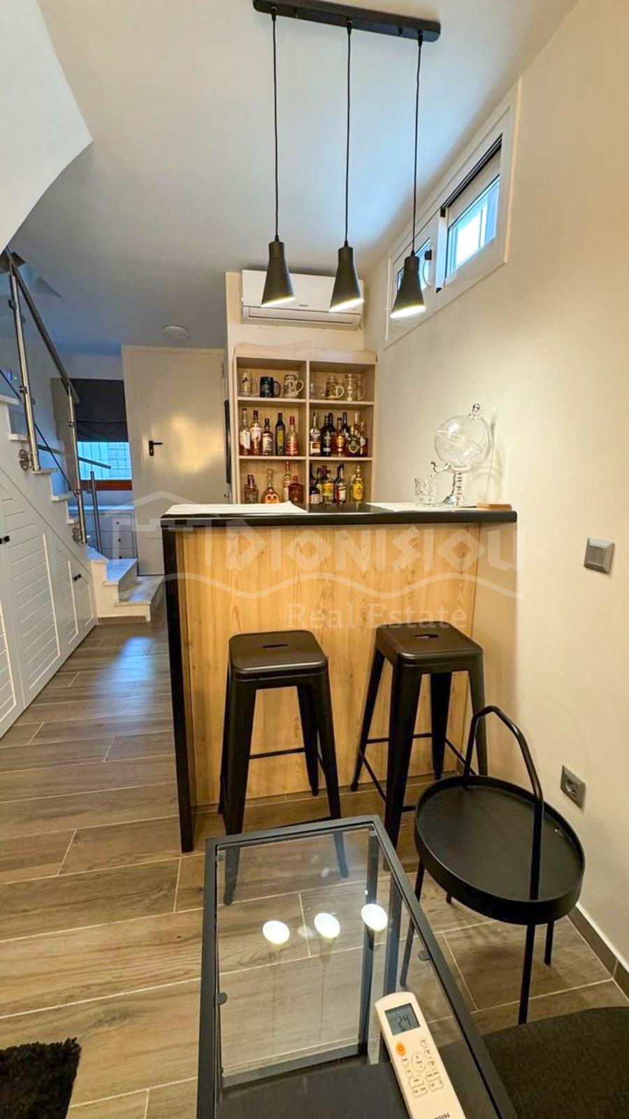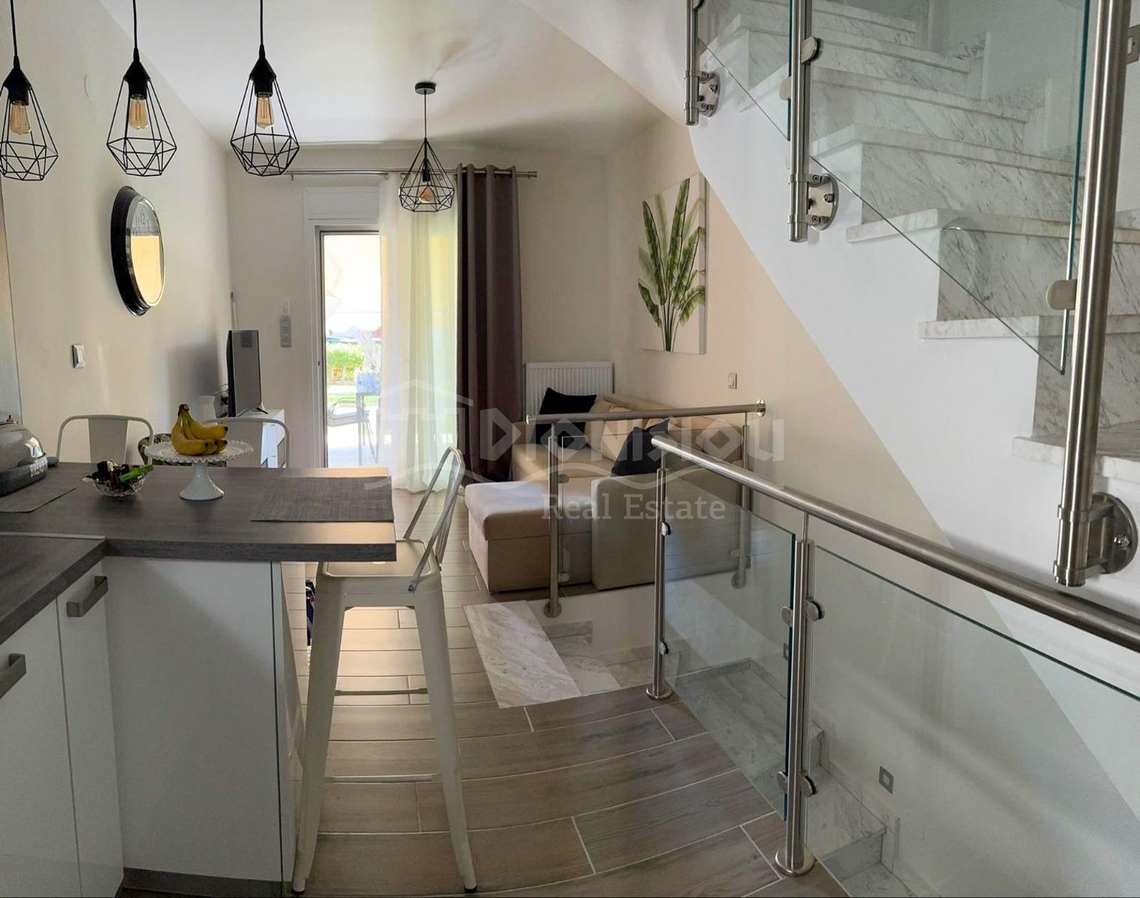 There are 3 levels in the maisonetta. The half underground floor consists of a living room with a bar, a bathroom and a laundry room. The ground floor consists of living room with a kitchen, WC and veranda with BBQ. The 1st floor consists of 2 bedrooms, a bathroom and a balcony.