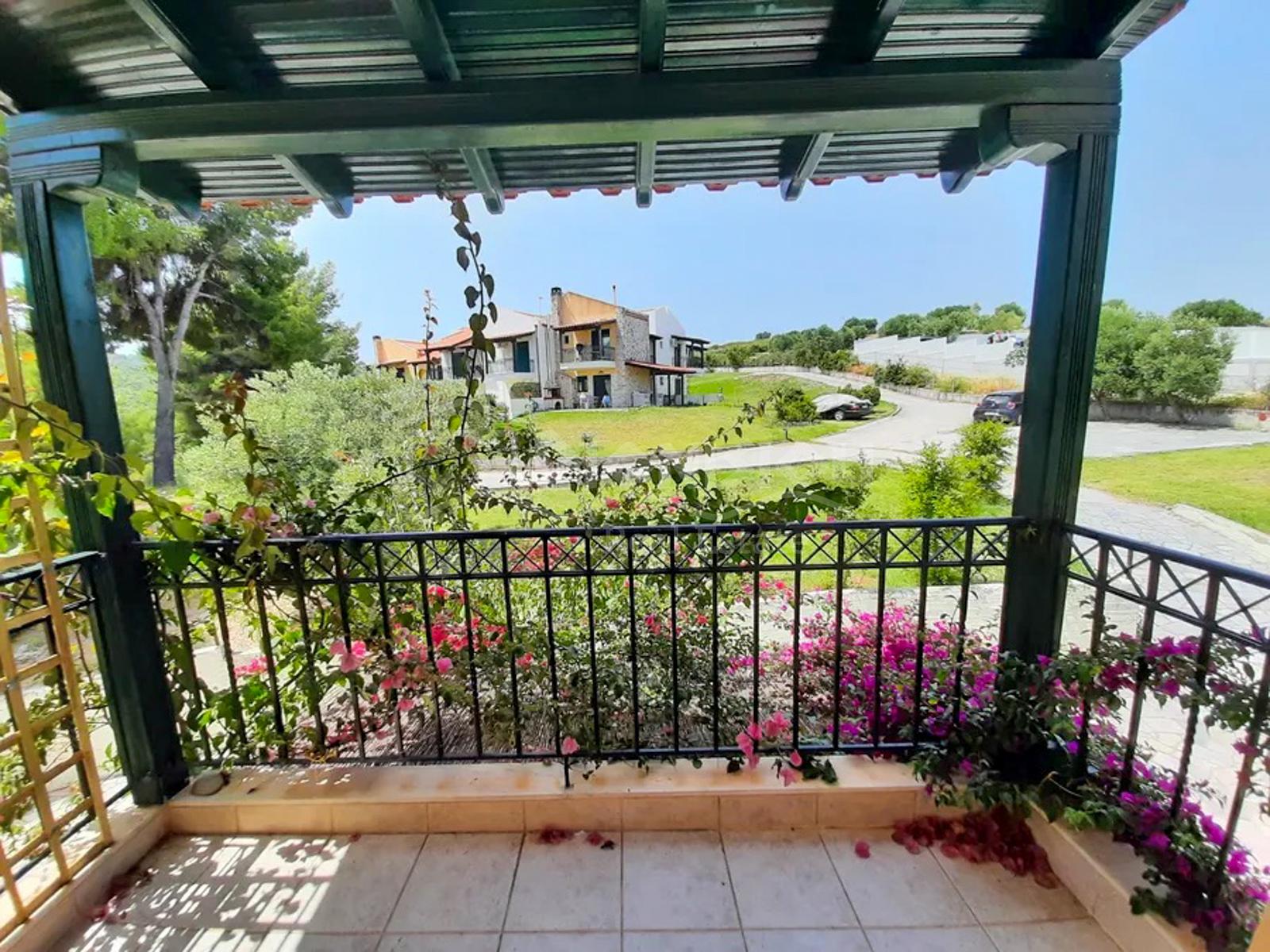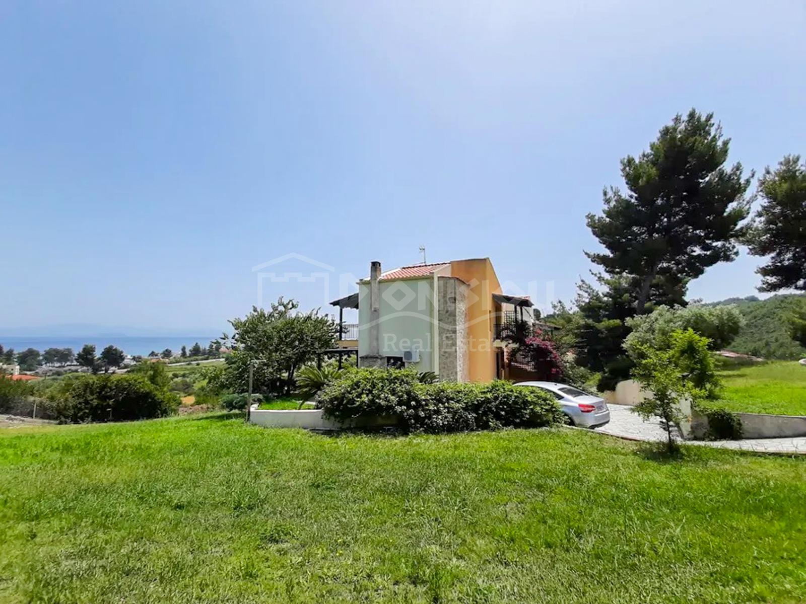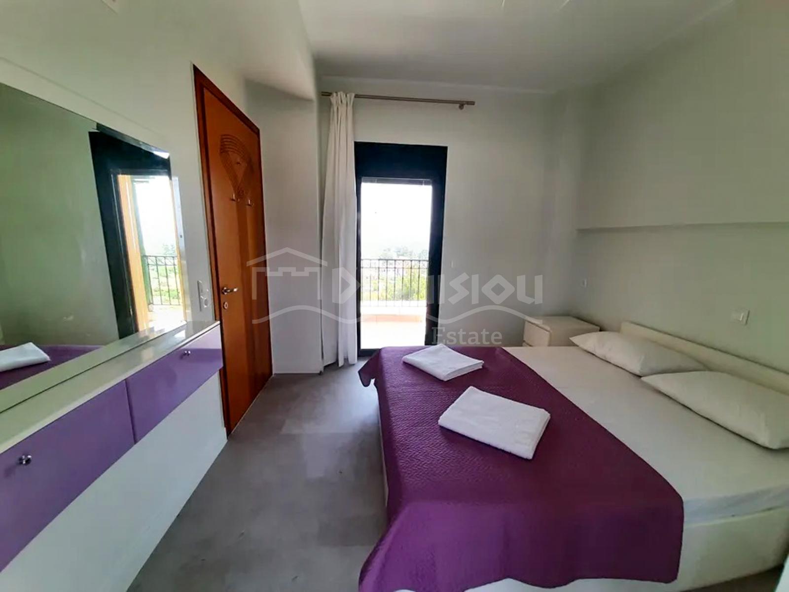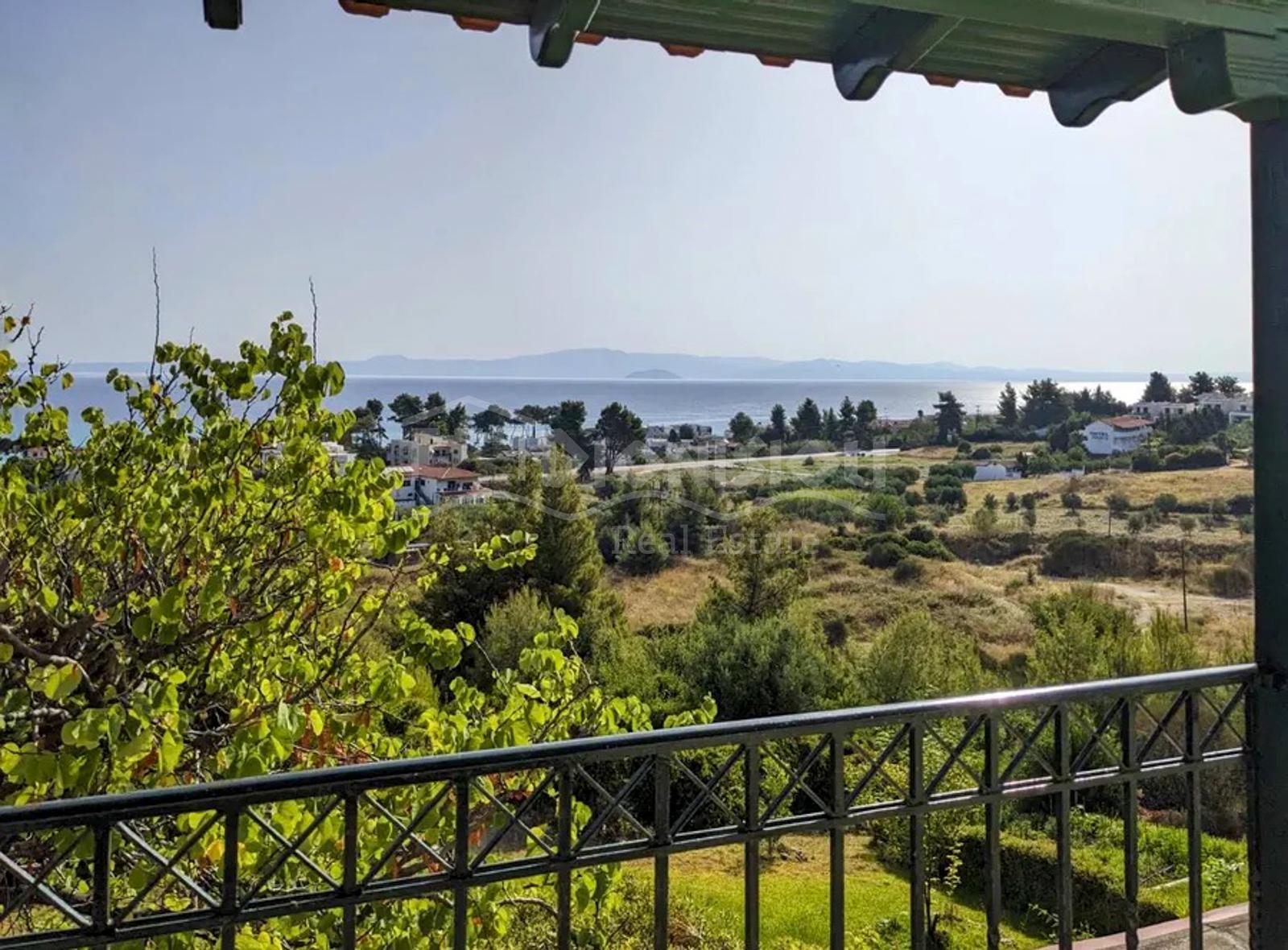 This maisonette in Hanioti (Kassandra, Halkidiki) is ideal for those who want a home with a sea view in a complex with a swimming pool in a popular holiday village.