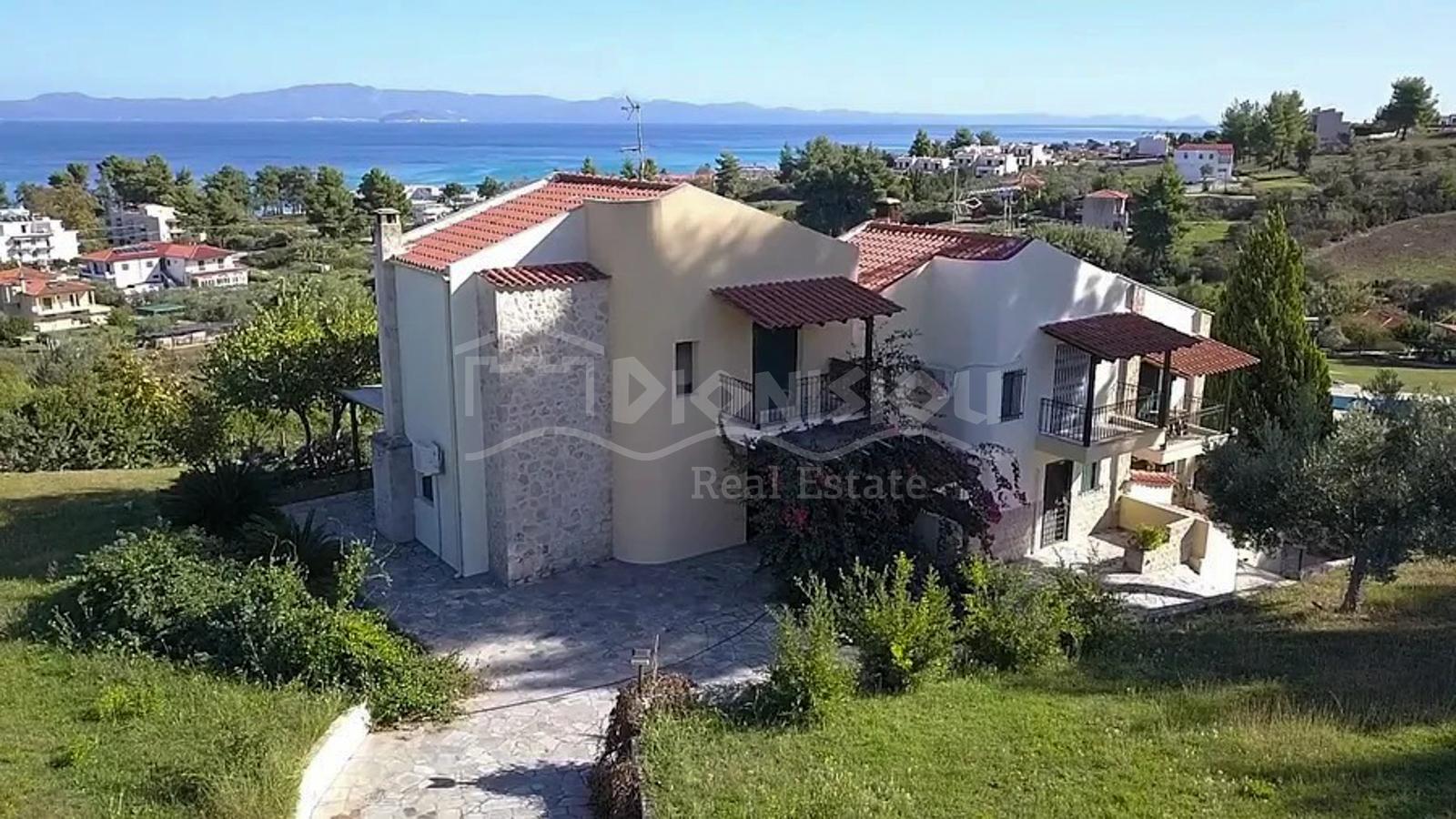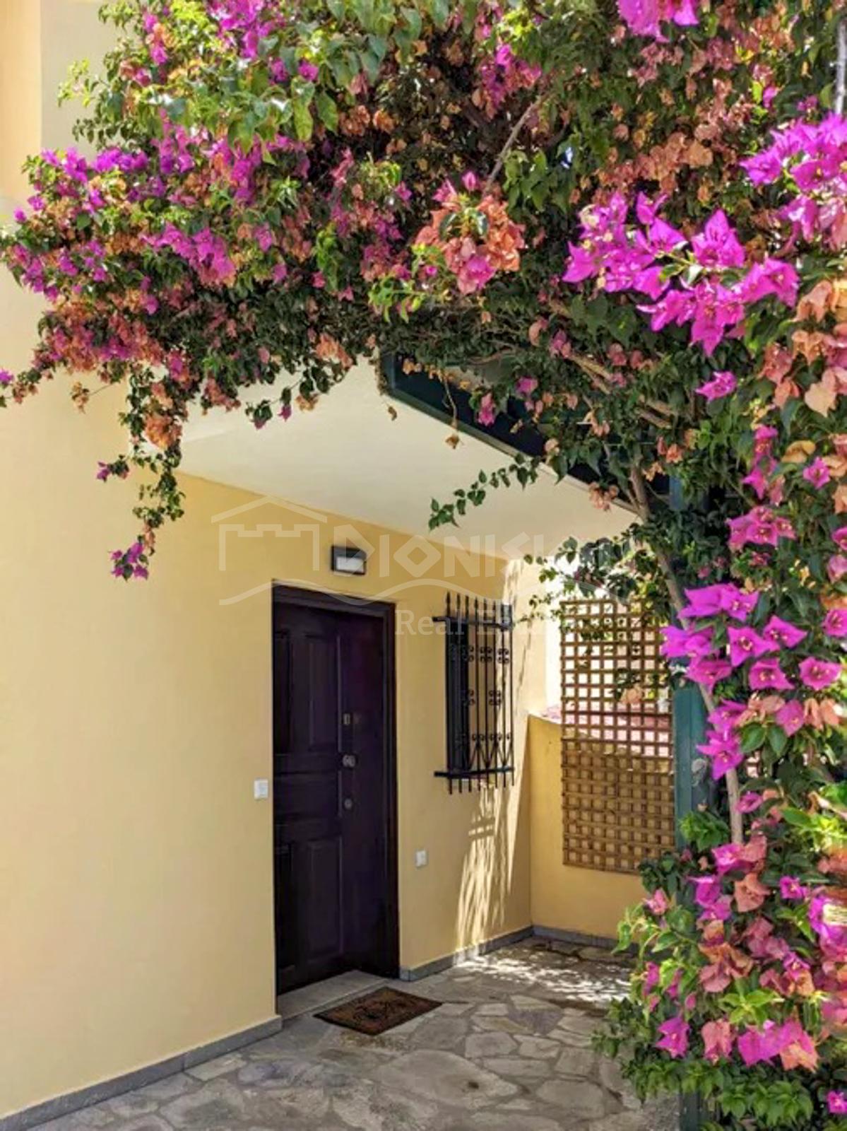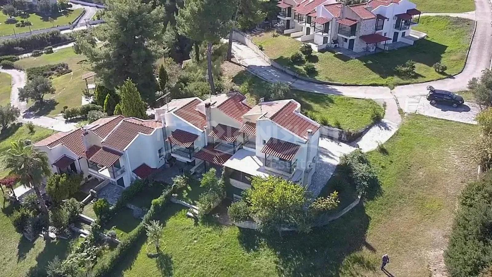 This maisonette in Hanioti (Kassandra, Halkidiki) is ideal for those who want a home with a sea view in a complex with a swimming pool in a popular holiday village.
