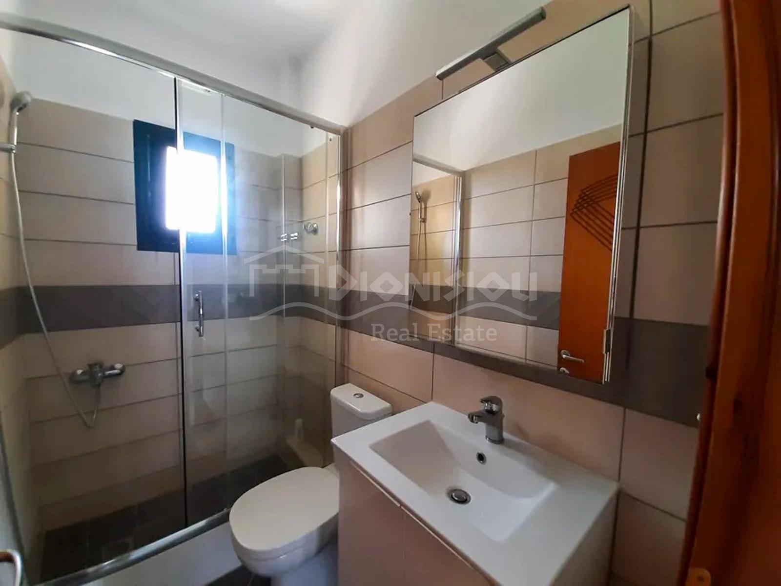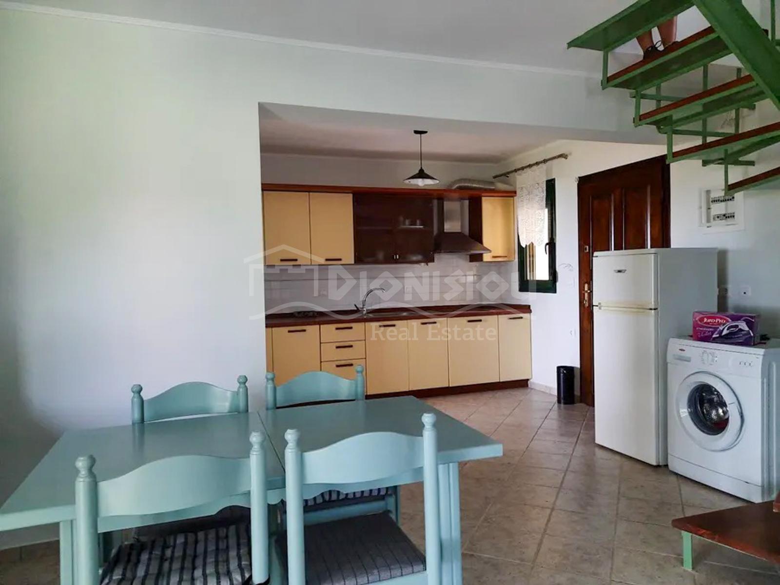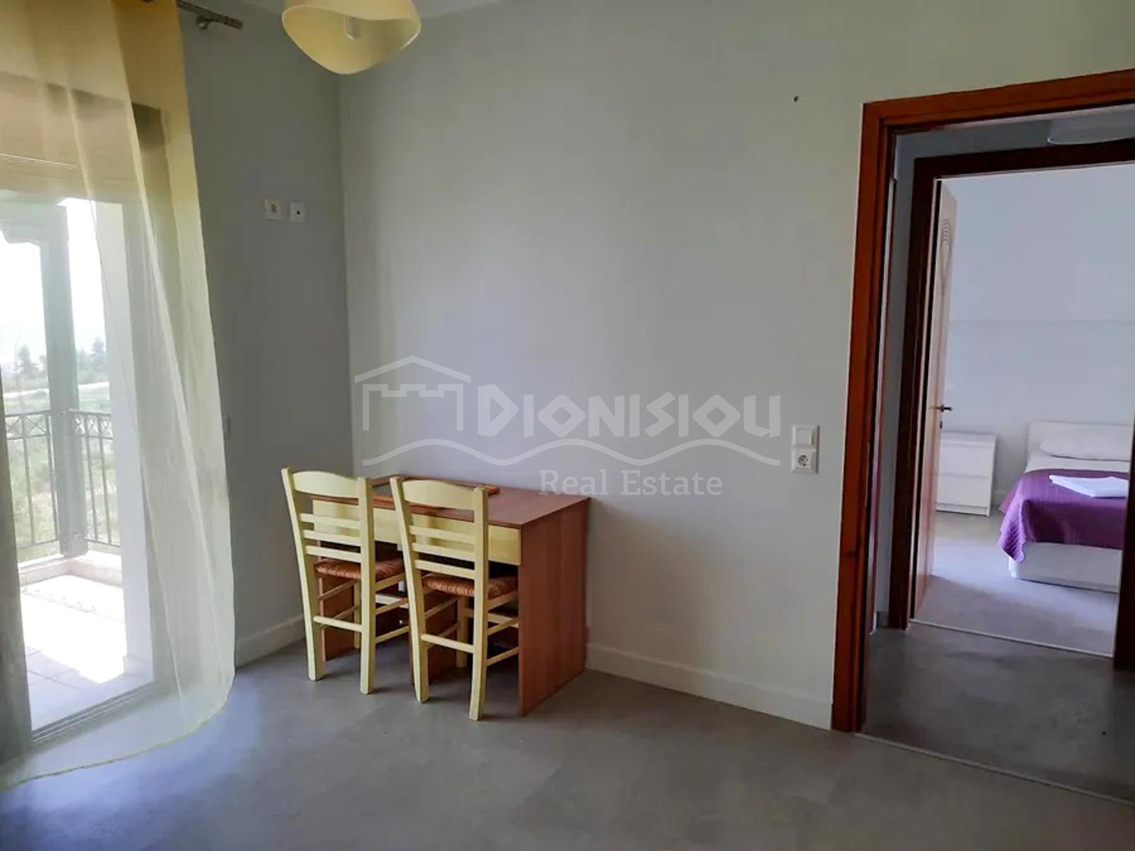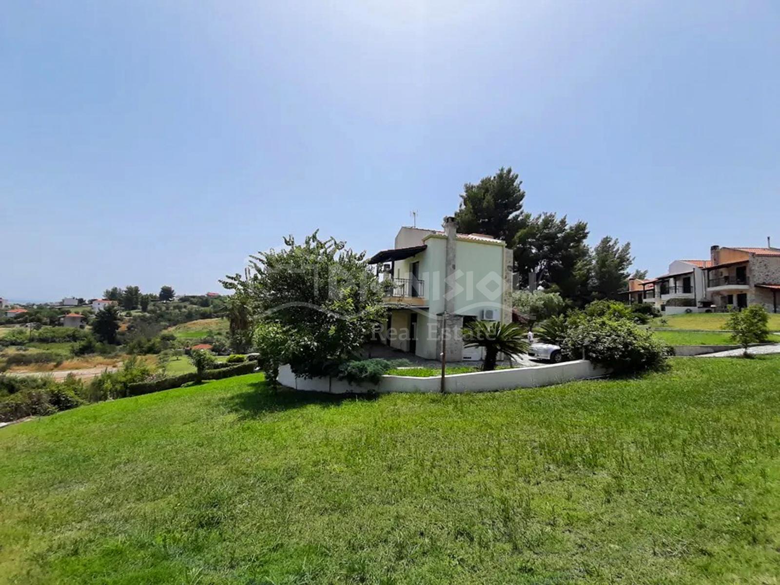 This maisonette in Hanioti (Kassandra, Halkidiki) is ideal for those who want a home with a sea view in a complex with a swimming pool in a popular holiday village.