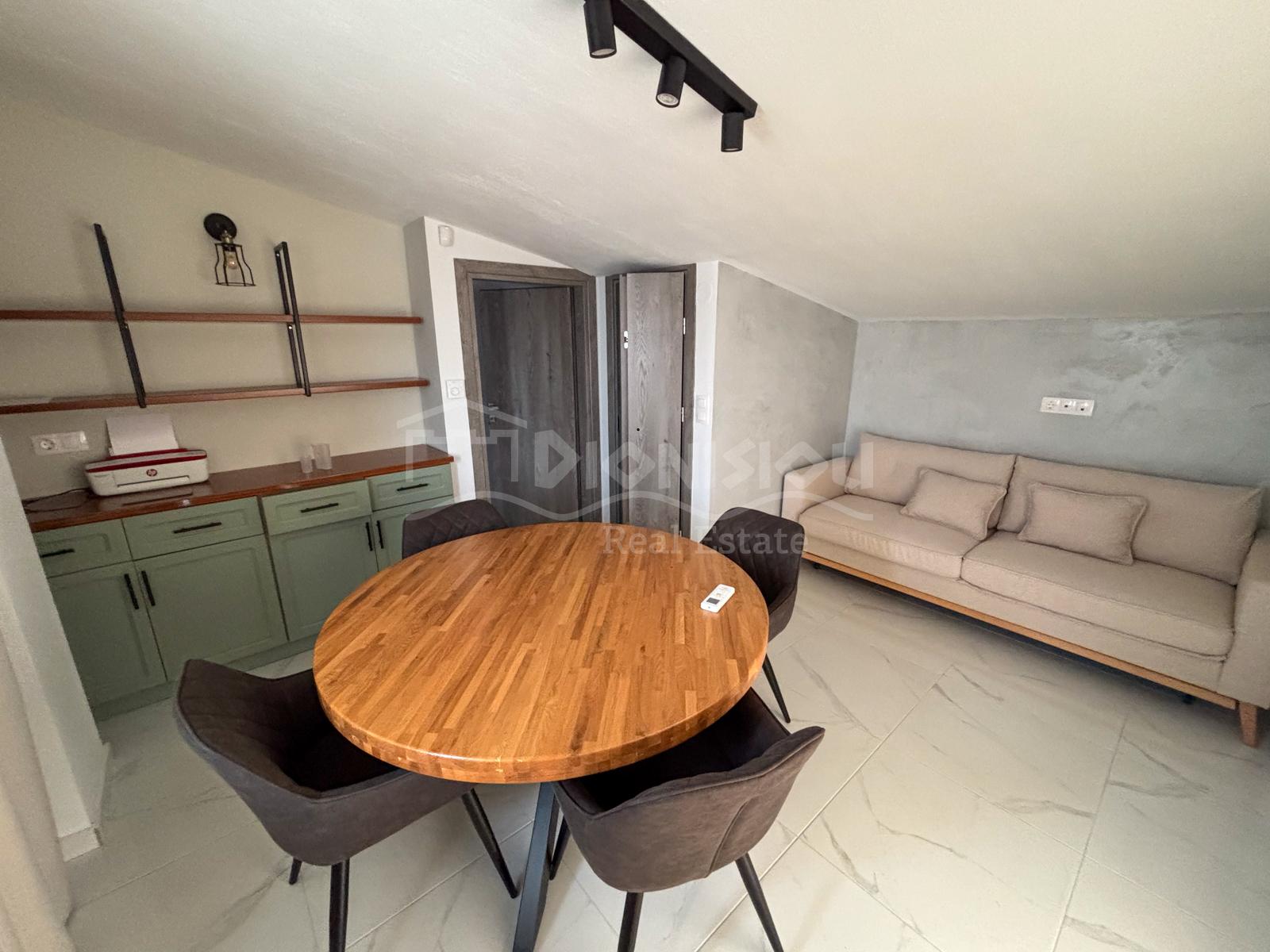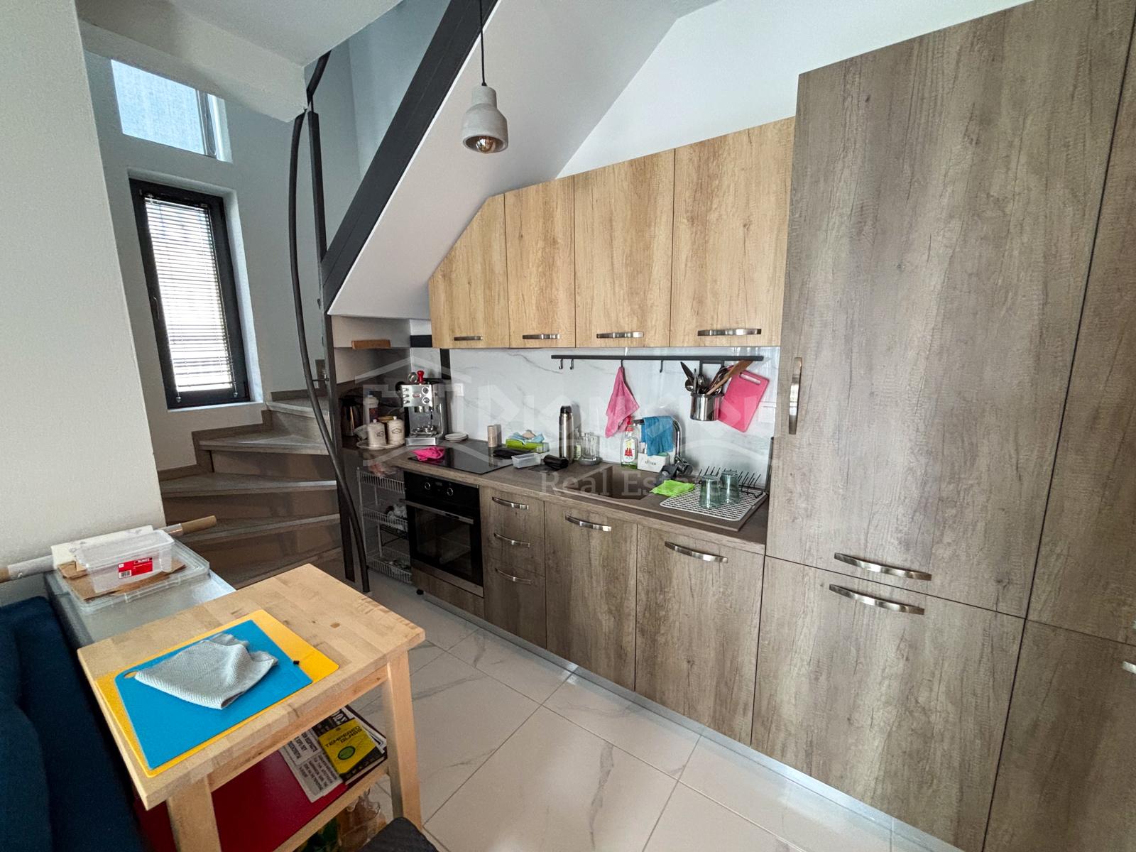 The 1st floor consists of a living room with a kitchen, 2 bedrooms, a bathroom and a balcony. The 2nd mansard floor consists of a living room, a bathroom and a balcony.