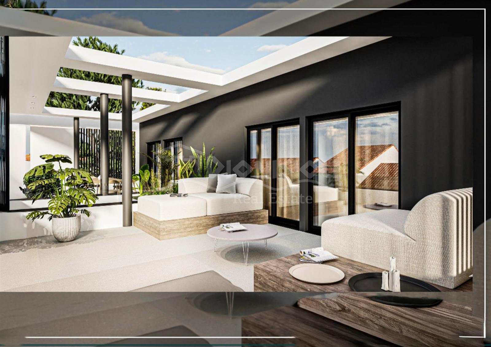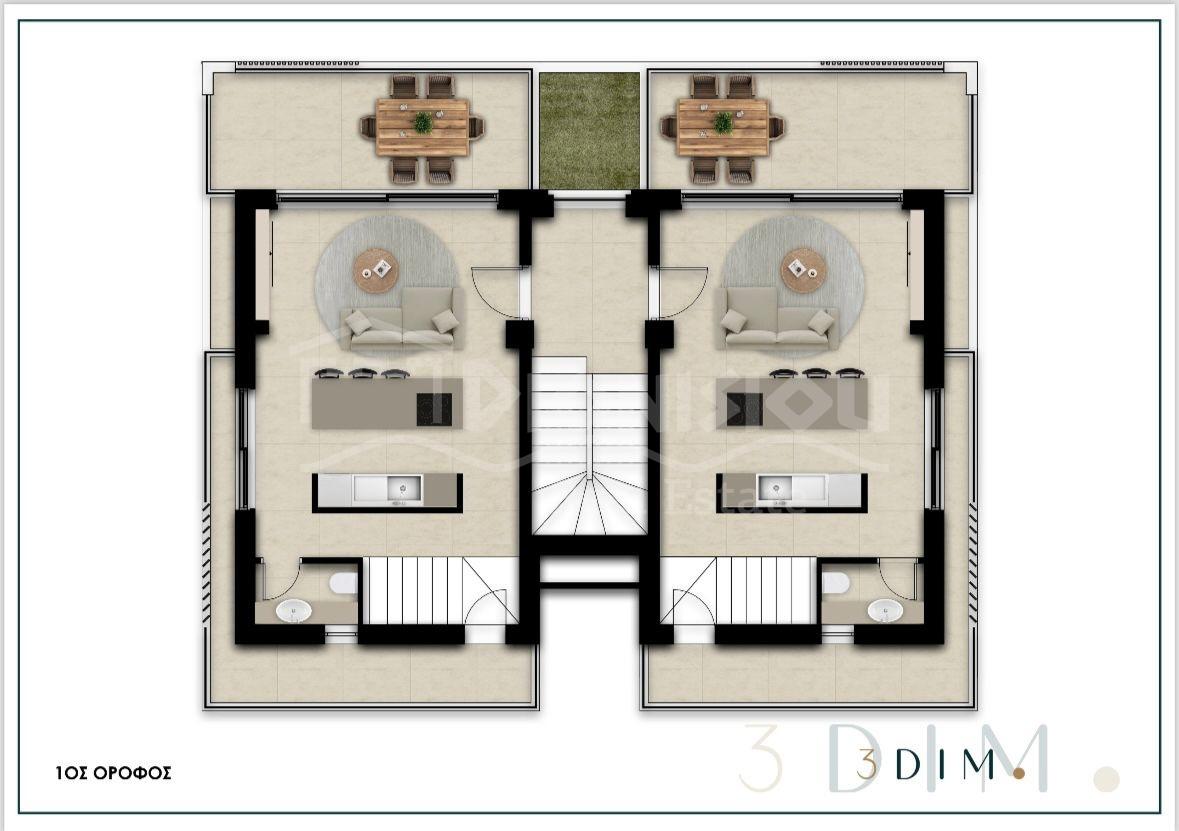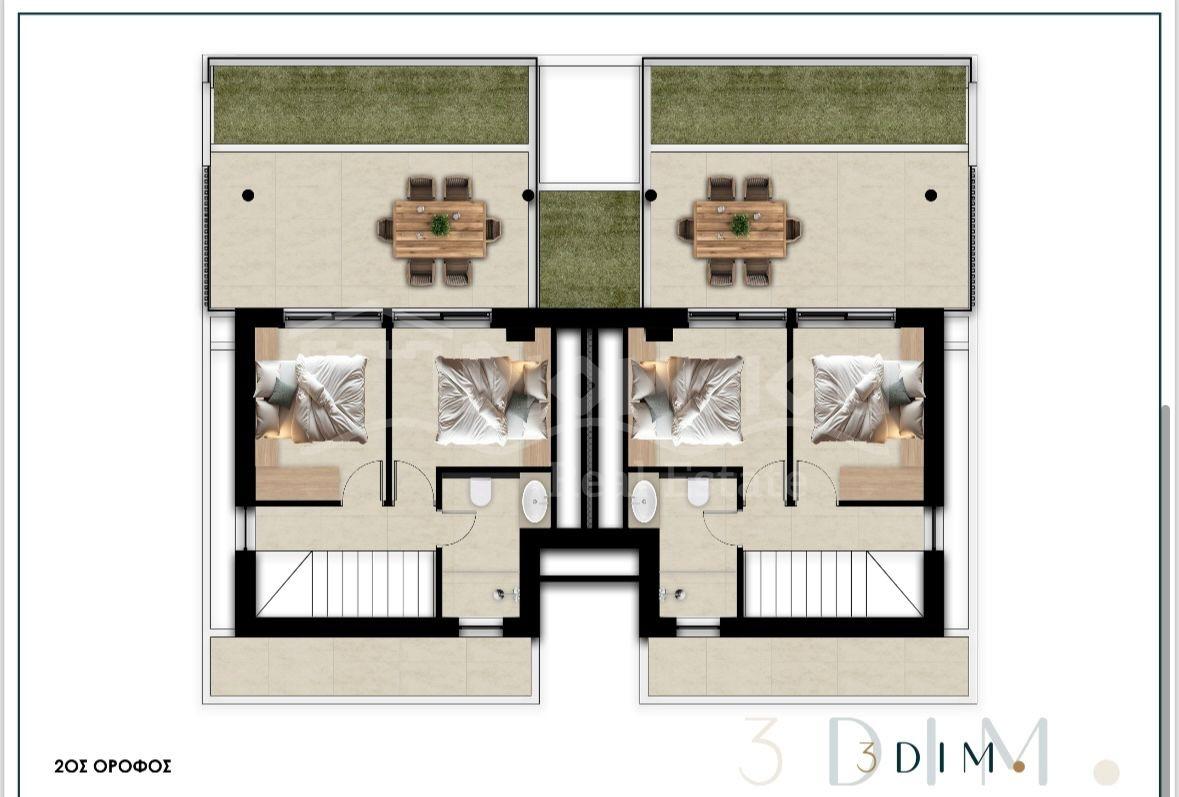 The 1st floor consists of a living room with a kitchen, wc and a balcony. The 2nd floor consists of 2 bedrooms, a bathroom and a balcony.