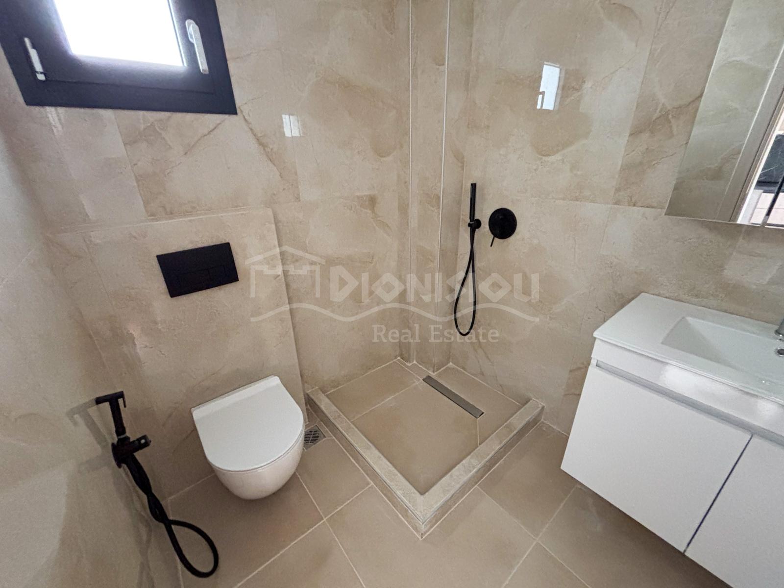 The ground floor consists of a large living room with a kitchen, a bathroom and 2 balconies. The half underground floor consists of 3 bedrooms and a bathroom.