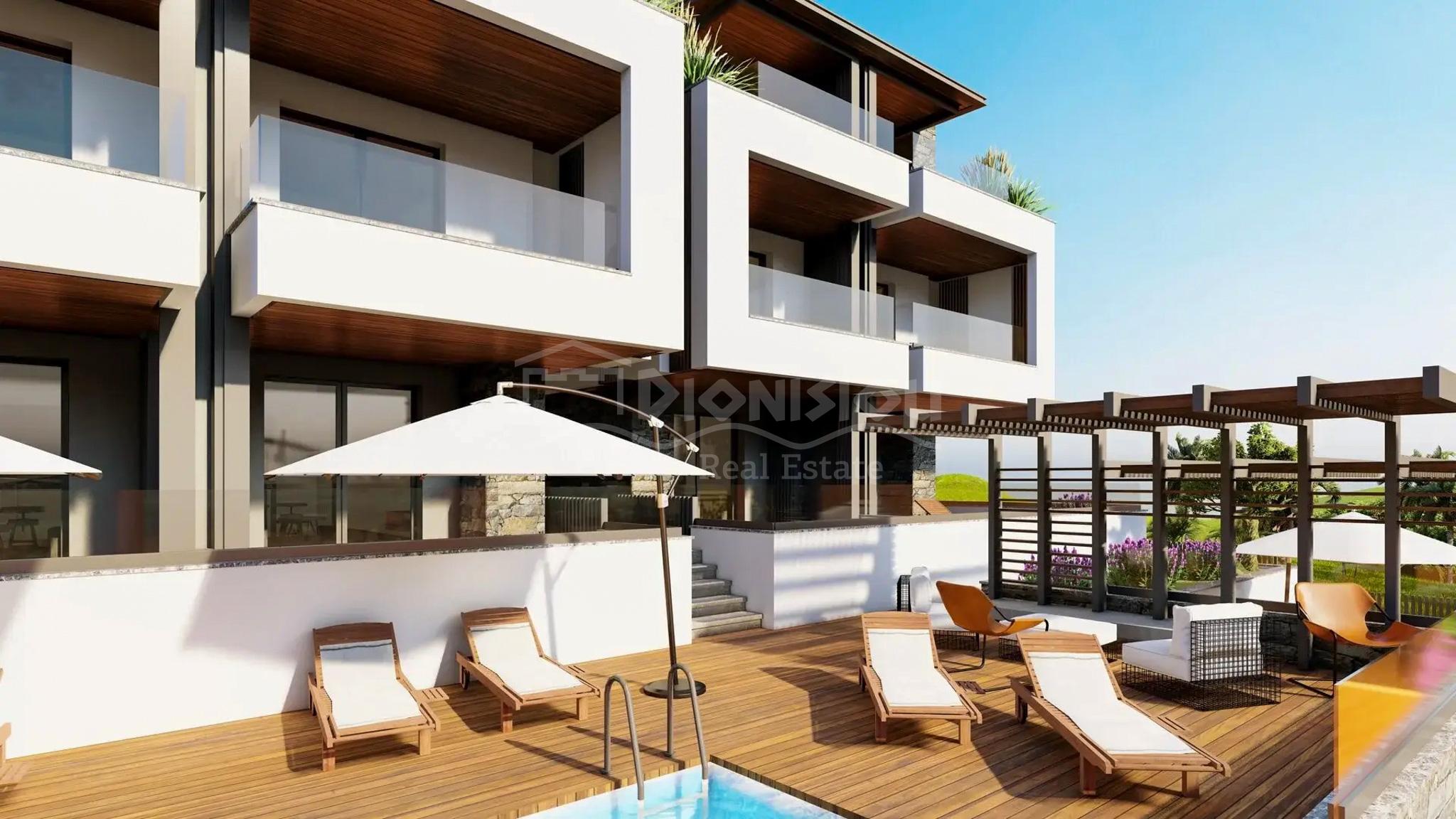 The complex of apartments and maisonettes is located in Nikiti village 650 meters from the great beach.