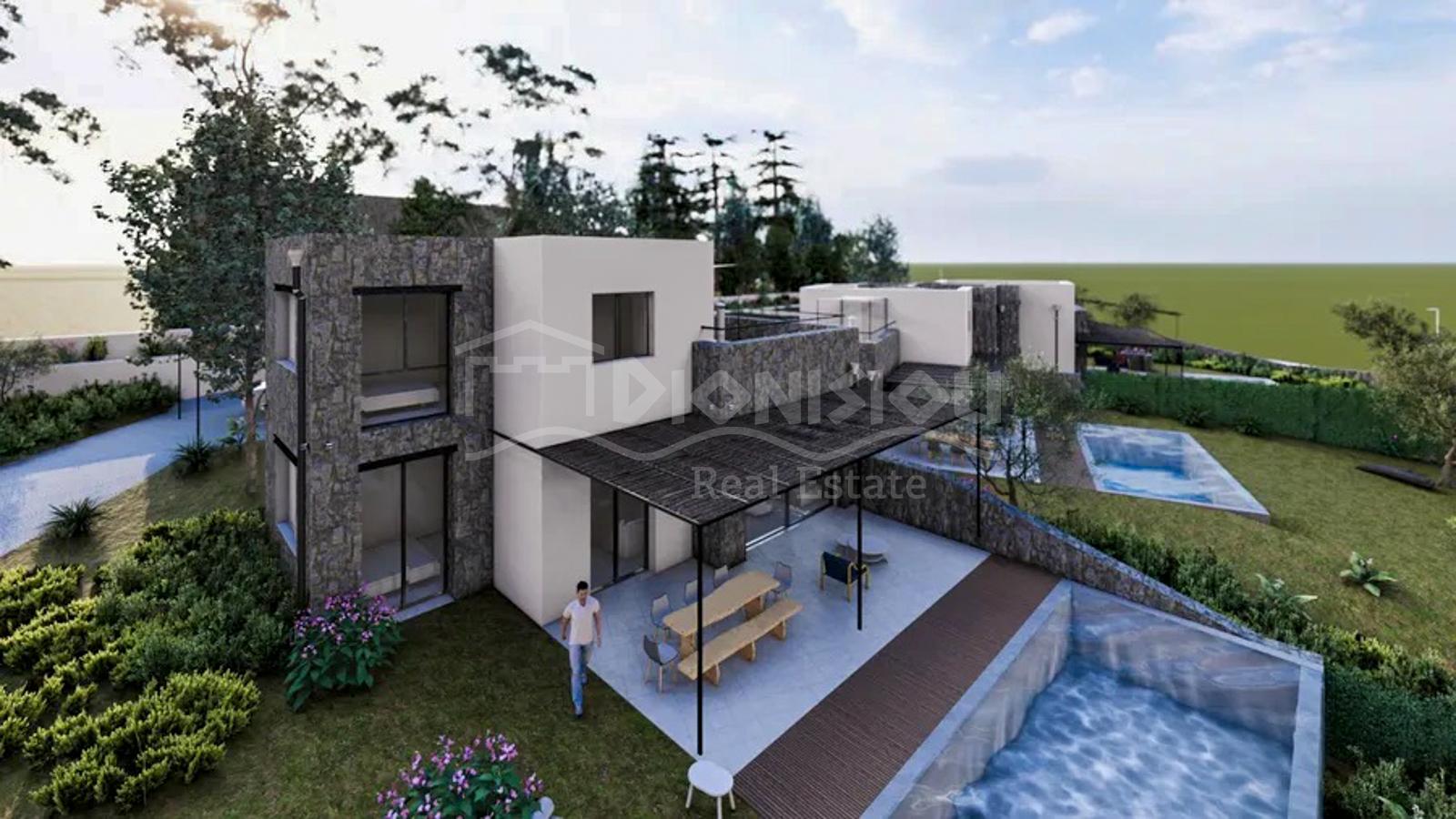 There are 2 nextdoor maisonettes for sale. There are plots 550 and 800 sq. meters for each maisonette with barbeque and a swimming pool 40 sq. meters. There are 3 parking places for each maisonette.