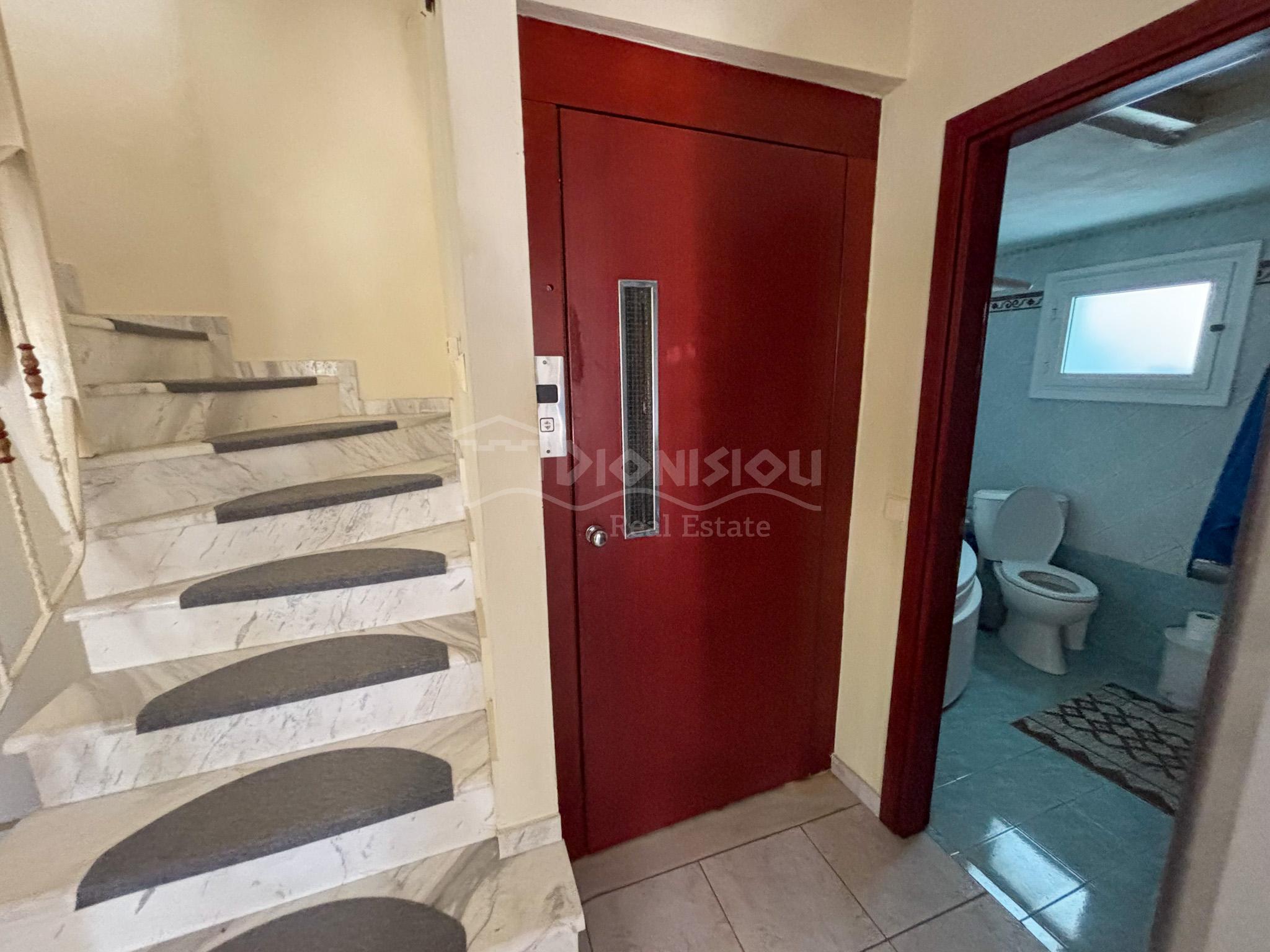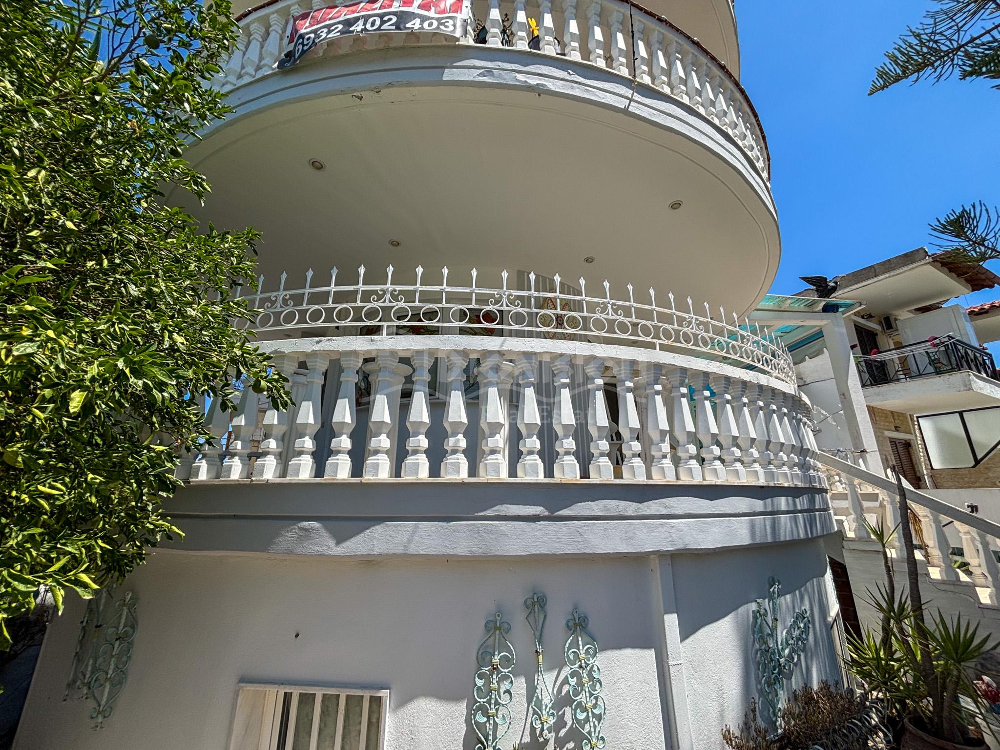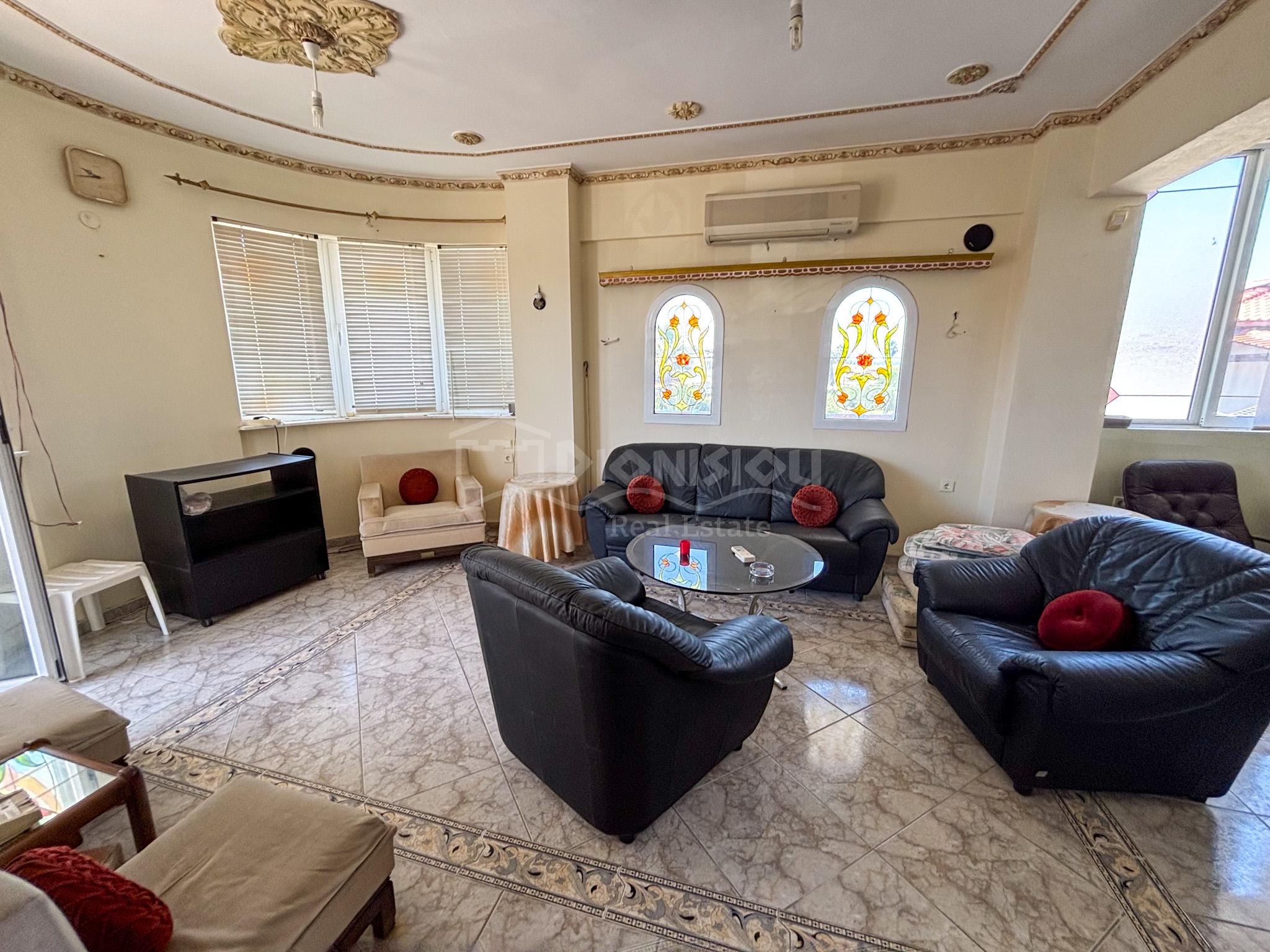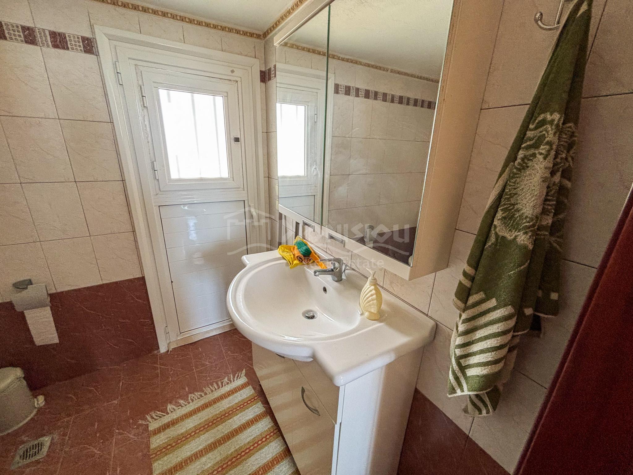 The high ground floor consists of a living room with a fireplace and a kitchen, a bathroom with a jakuzzi, a closed balcony which can be used for a summer restaurant area and a balcony.