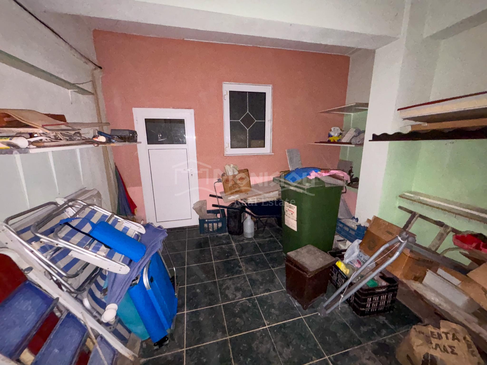 The half underground floor consists of a living room with a kitchen, 2 bedrooms, a bathroom, 2 storage rooms and a garage. There is a separate entrance to the half underground floor.